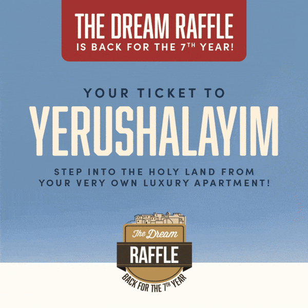 Imagine owning a luxury $1,000,000 apartment in the heart of Yerushalayim, a brand-new 2024 construction, where every morning you wake up to the breathtaking beauty of our holy city. The Dream Raffle is back for its 7th year, offering you this once-in-a-lifetime opportunity!