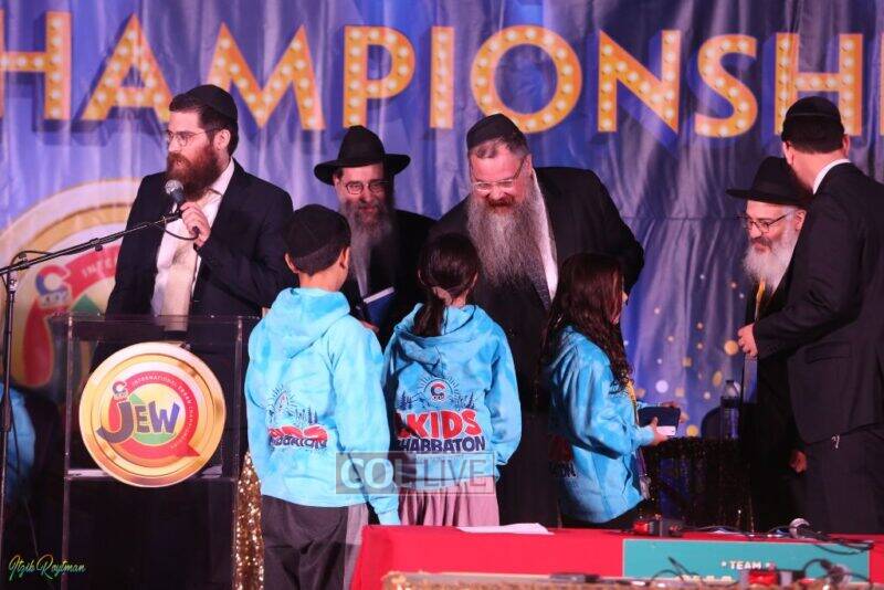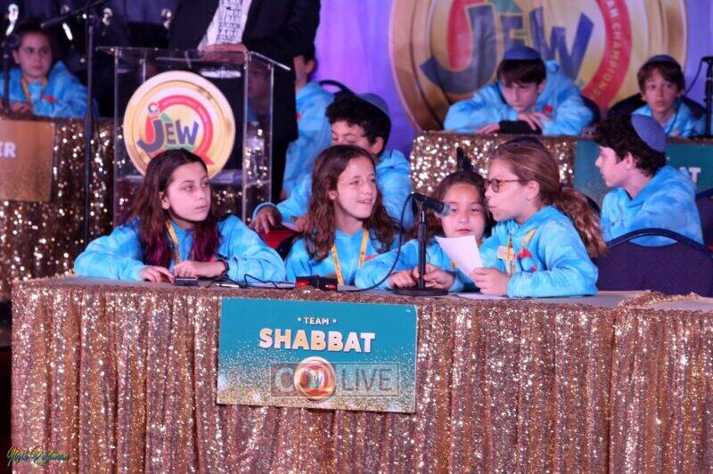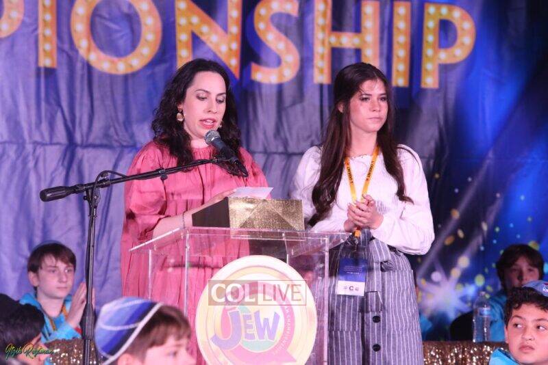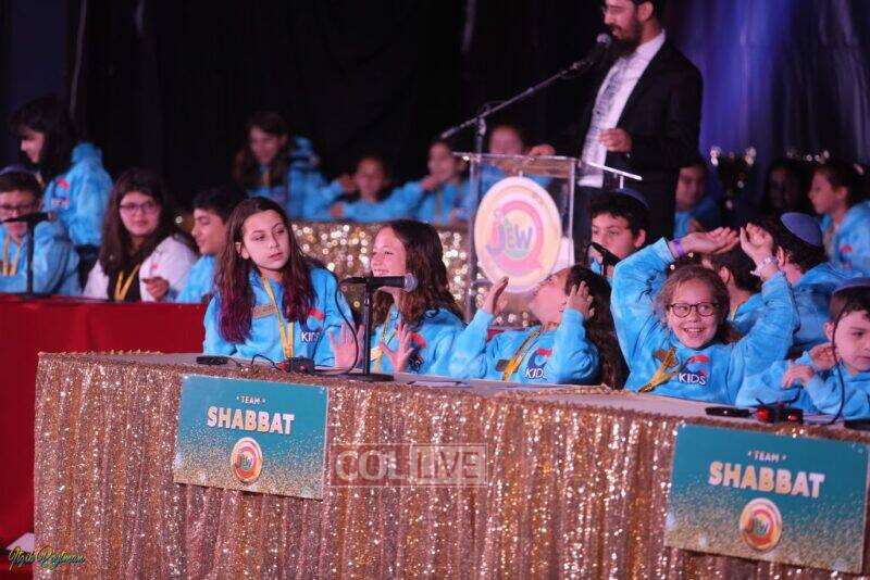 The Game Show took place this past Sunday at the Bushkill Inn in Pennsylvania, where finalists have stayed with their families for a Shabbaton. After such a Shabbos filled with beautiful davening and singing, cherished relationships formed, and a joyful atmosphere was felt. The participants were ready for the grand finale of the weekend, the JEWQ Championship Event. Thankfully the game show did not disappoint. In a dramatic battle of the minds, the children displayed their astounding mastery of essential Torah knowledge, providing both an entertaining and inspiring experience.