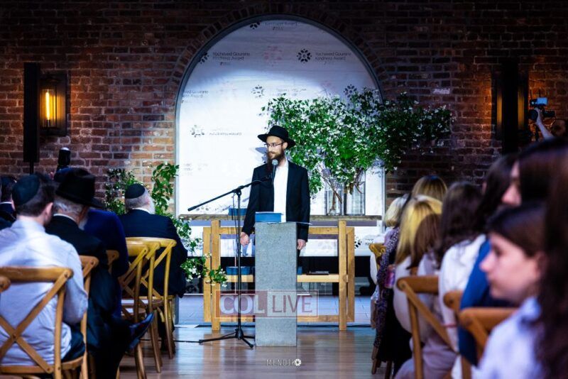 Avremi Gourarie, Yocheved’s dear father, then shared some personal words of inspiration on the meaning of kindness and reminded us all that we are inherently good. After thanking all the incredible people that sent in nominations, he called upon a friend to share one final nomination. The room was silent as we heard about a loving soul, a friend who went above and beyond to offer kindness and simply be there when needed. You could feel the emotional energy in the room as the friend finished off by thanking Yocheved Gourarie for her kindness.