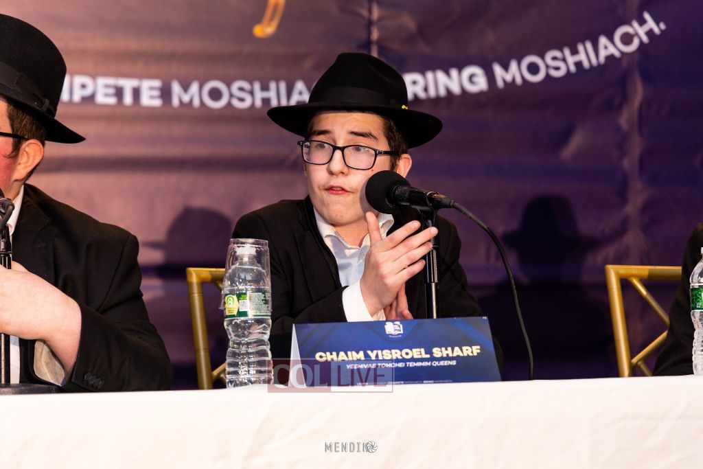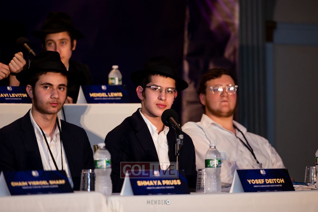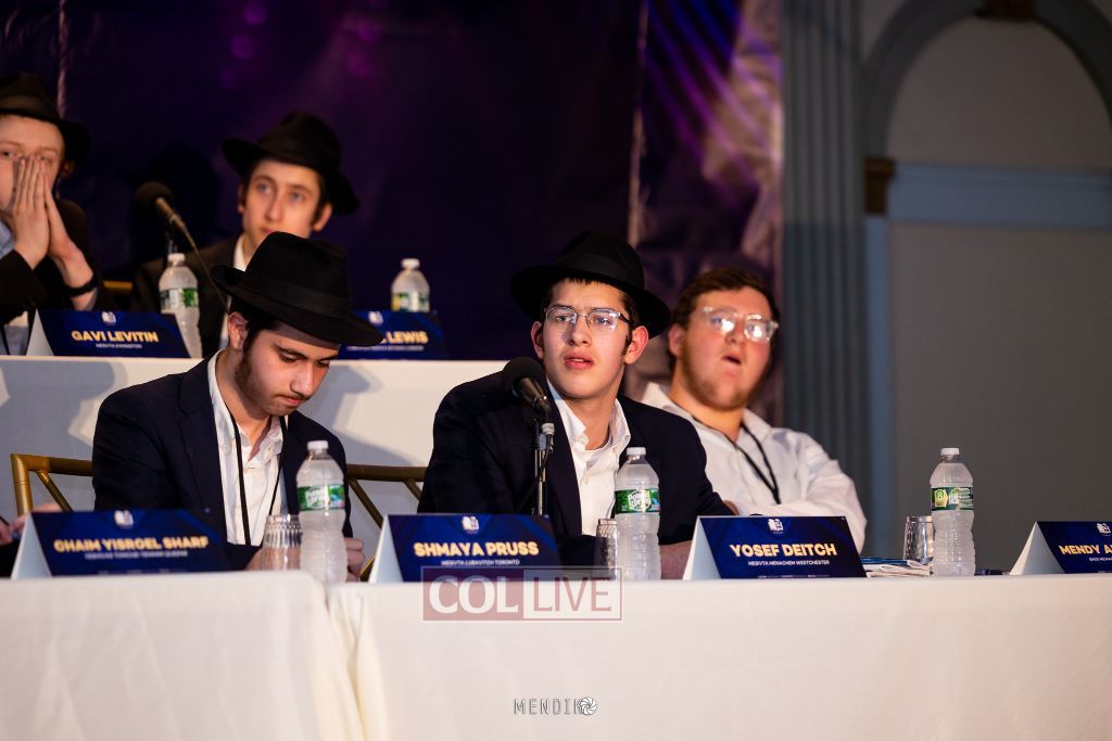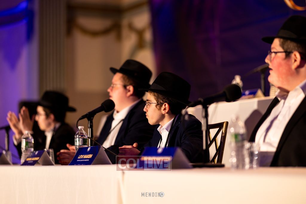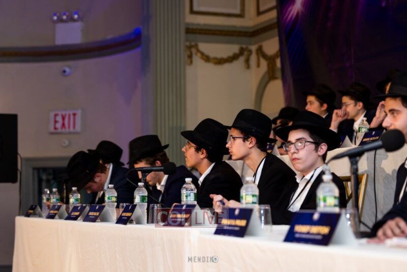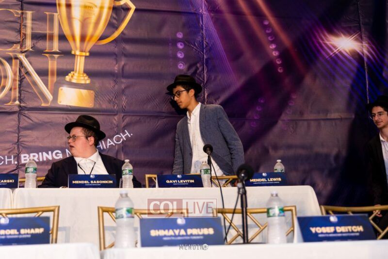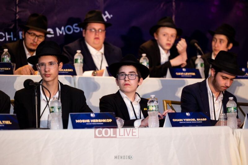 Bochurim on stage were representatives from various Yeshivas, many of whom had already showcased their knowledge in mini Chidon competitions at their respective yeshivas.
