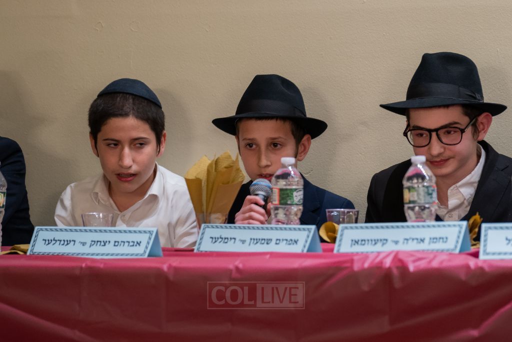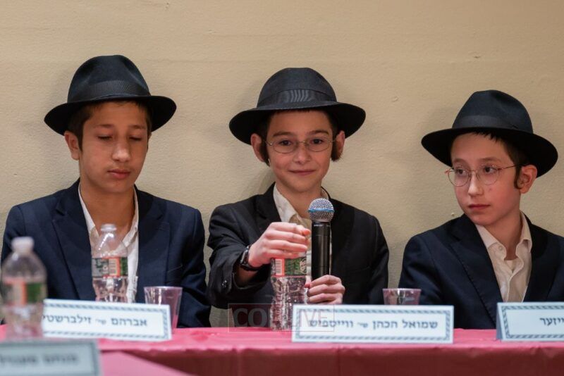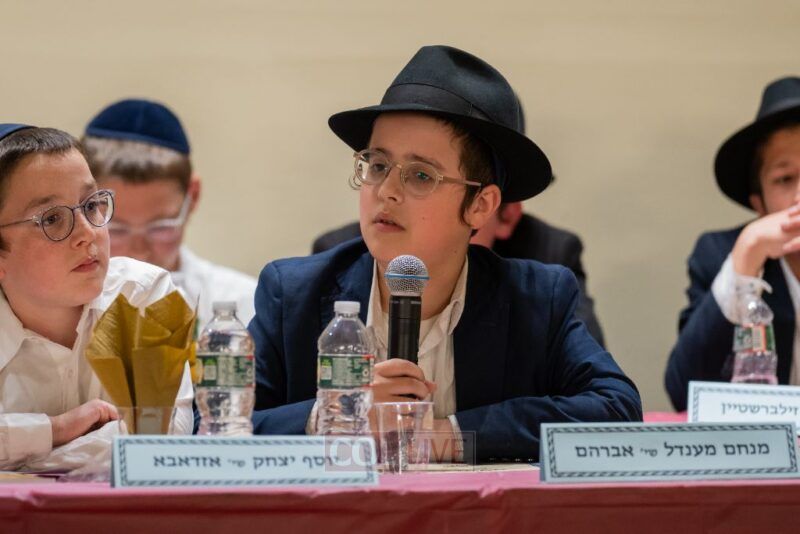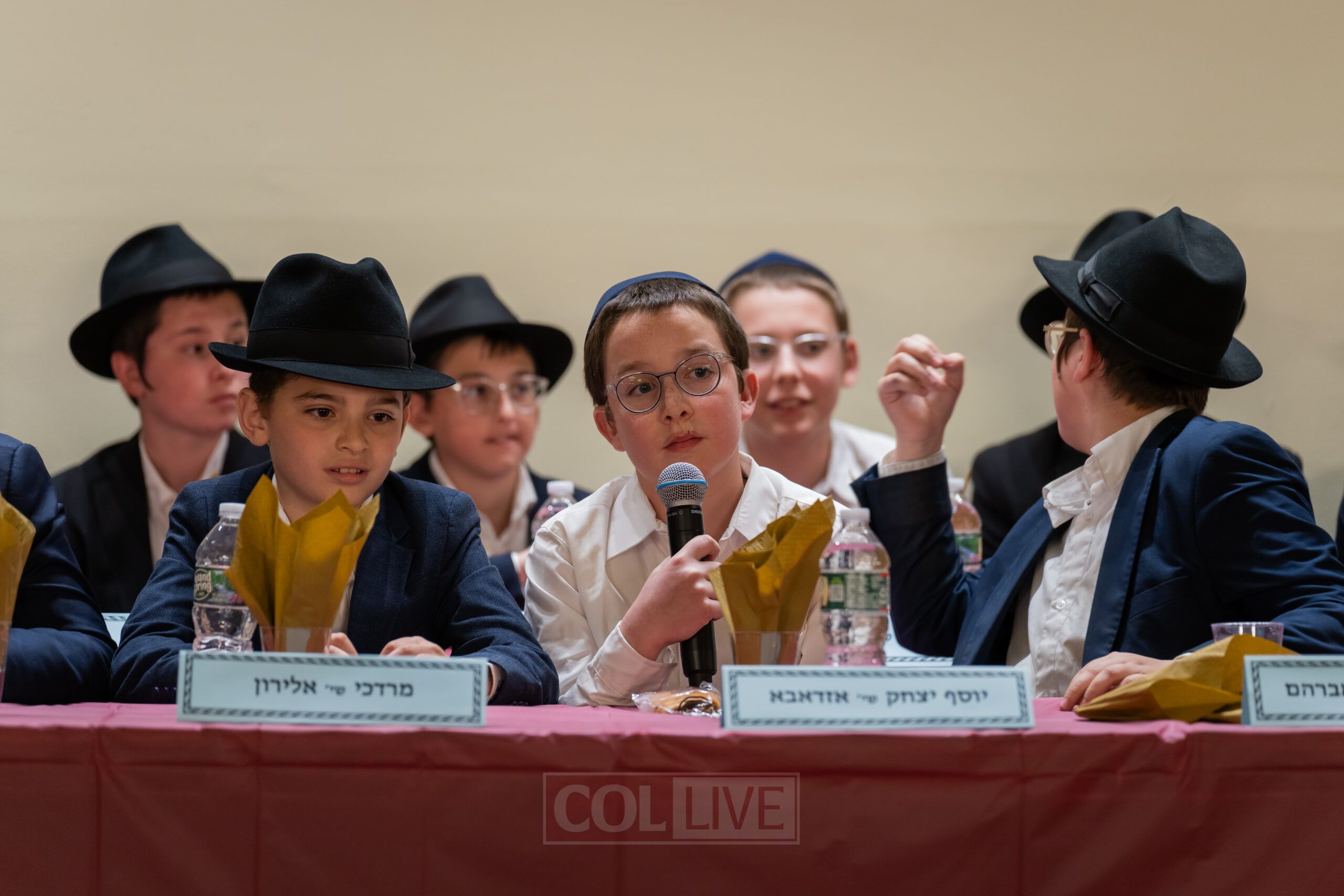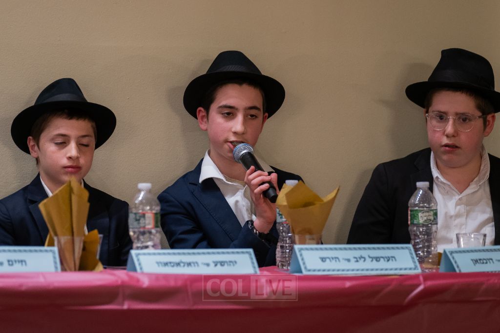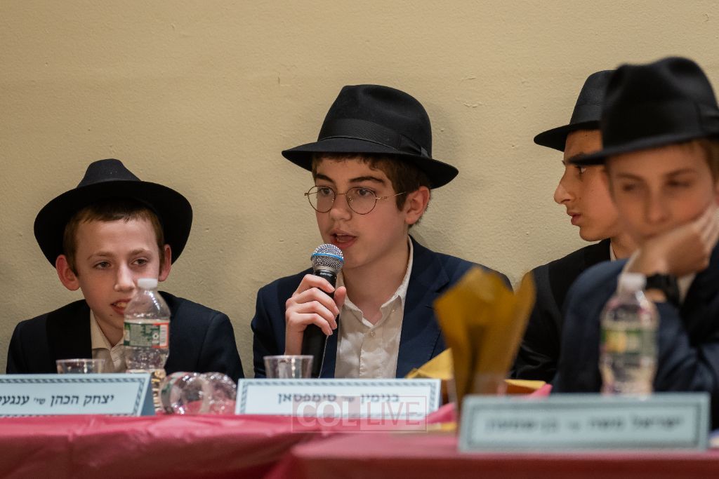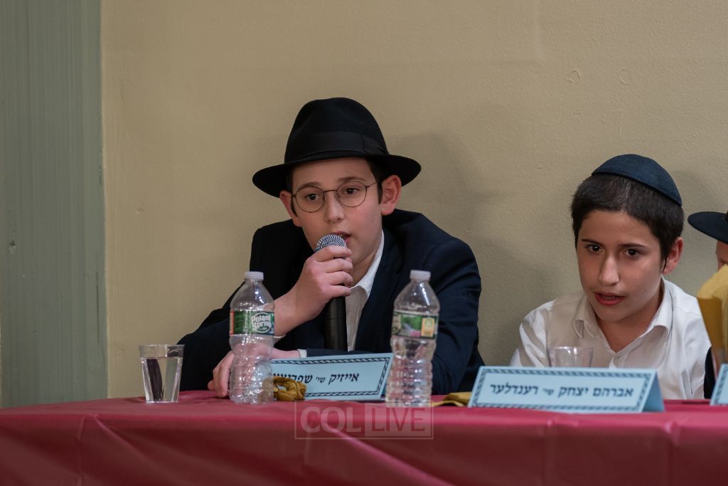 Chidon questions were posed by Rabbi Eli Simpson, principal of grades 6-7 in Oholei Torah, and Rabbi Menachem Mendel Scharf, principal of United Lubavitcher Yeshiva’s Mechina division. Judges included Rabbi Mendel Eidelman, Meisiv in Oholei Torah Zal, and Rabbi Levi Zirkind, 7th grade Rebbi in Oholei Torah.