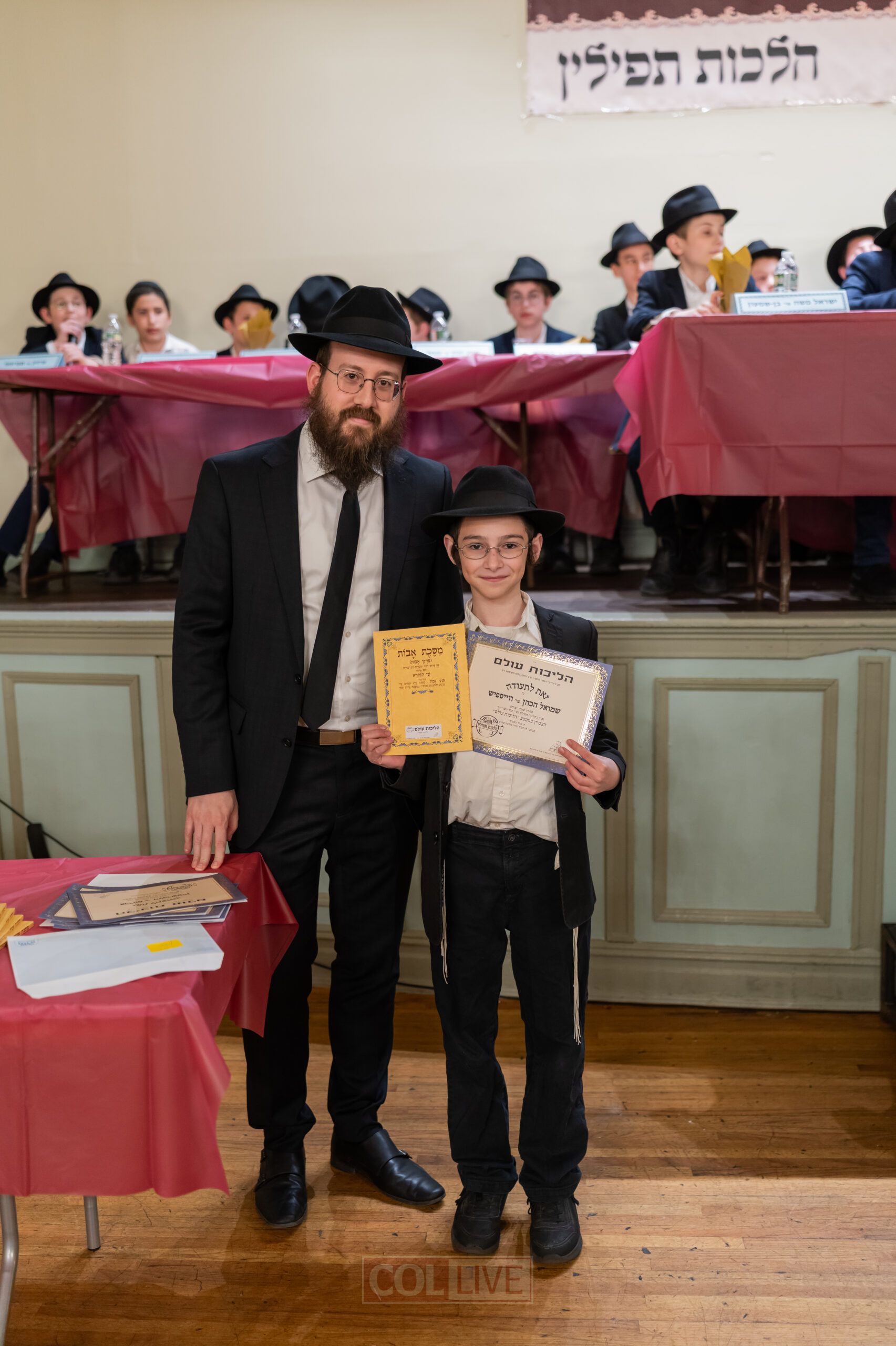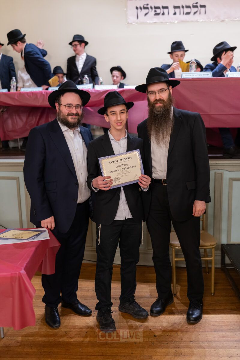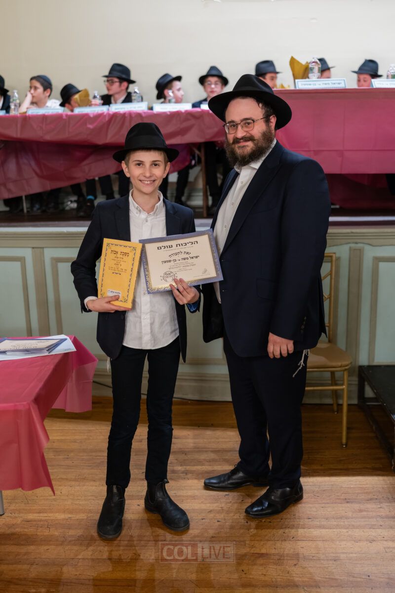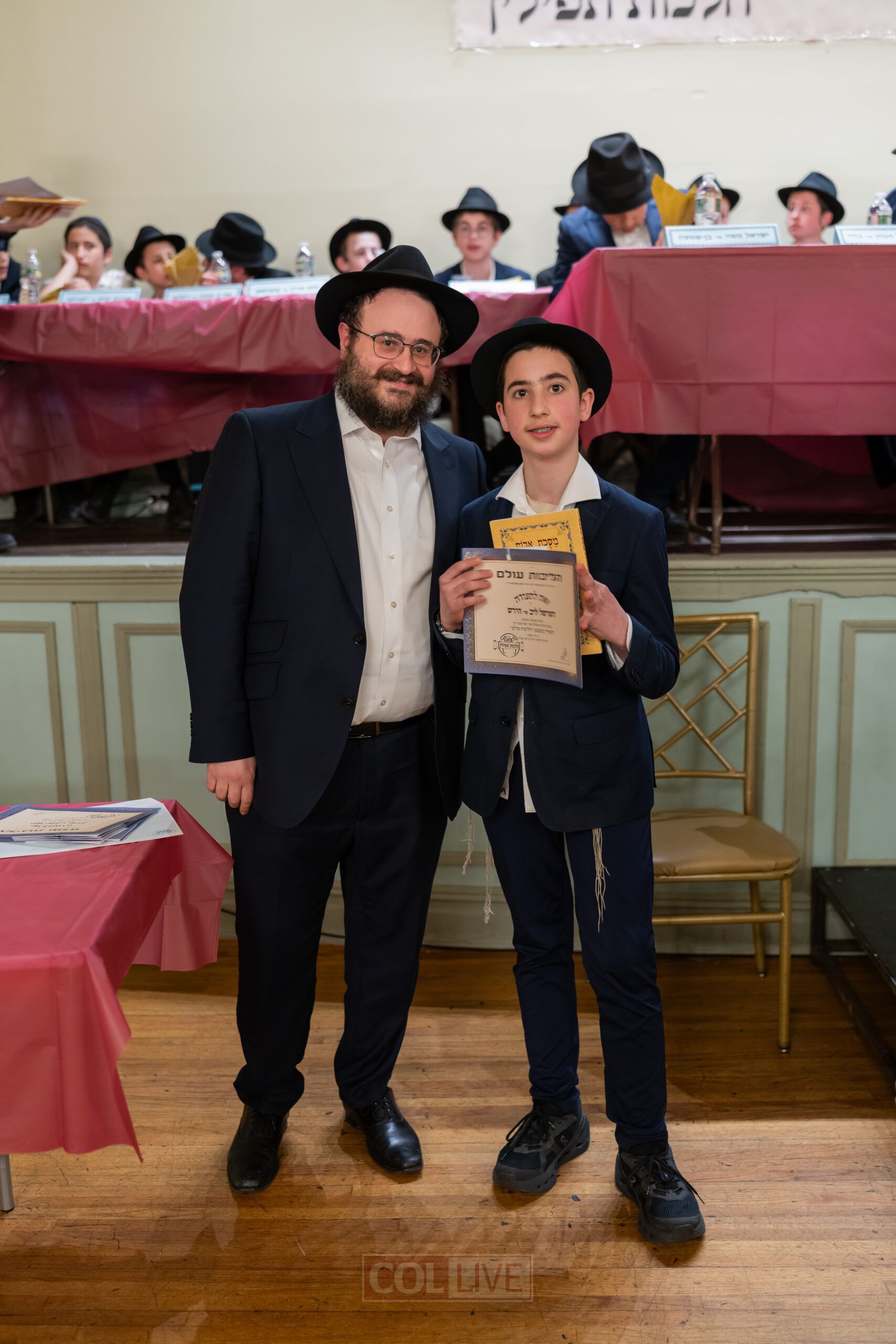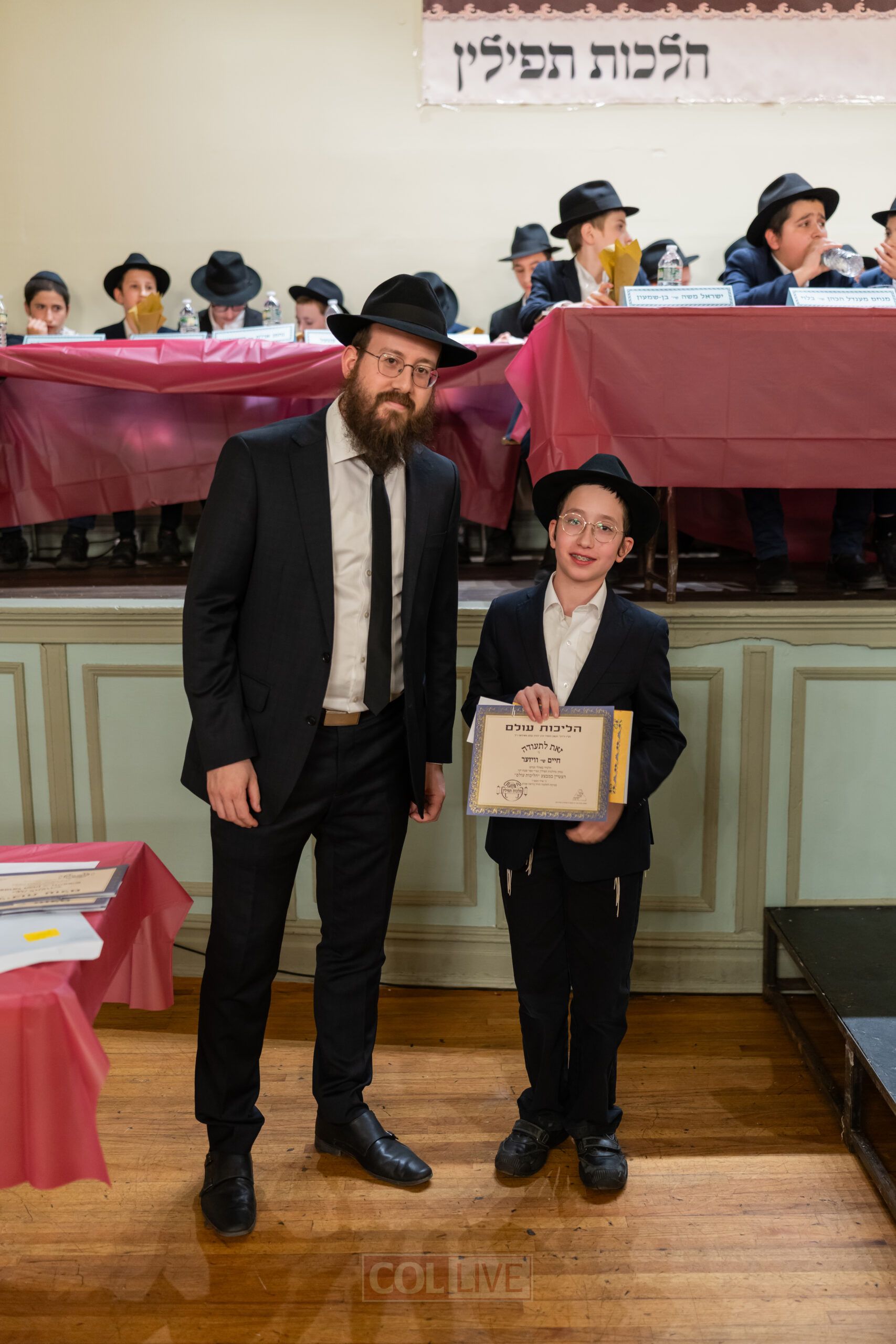 Chidon questions were posed by Rabbi Eli Simpson, principal of grades 6-7 in Oholei Torah, and Rabbi Menachem Mendel Scharf, principal of United Lubavitcher Yeshiva’s Mechina division. Judges included Rabbi Mendel Eidelman, Meisiv in Oholei Torah Zal, and Rabbi Levi Zirkind, 7th grade Rebbi in Oholei Torah.