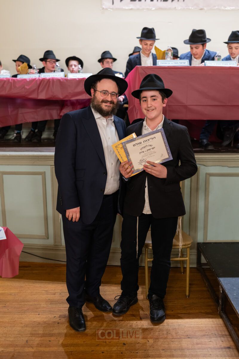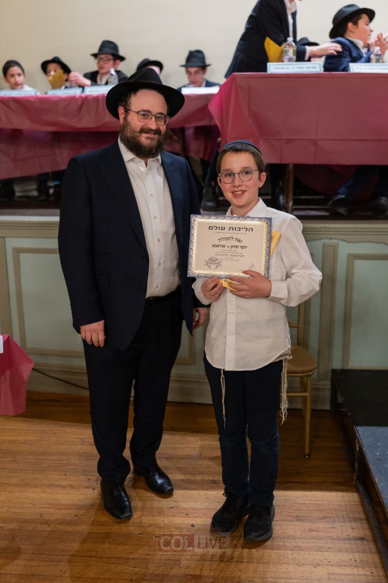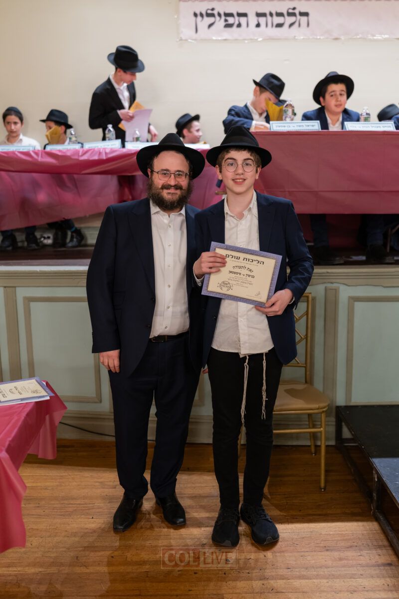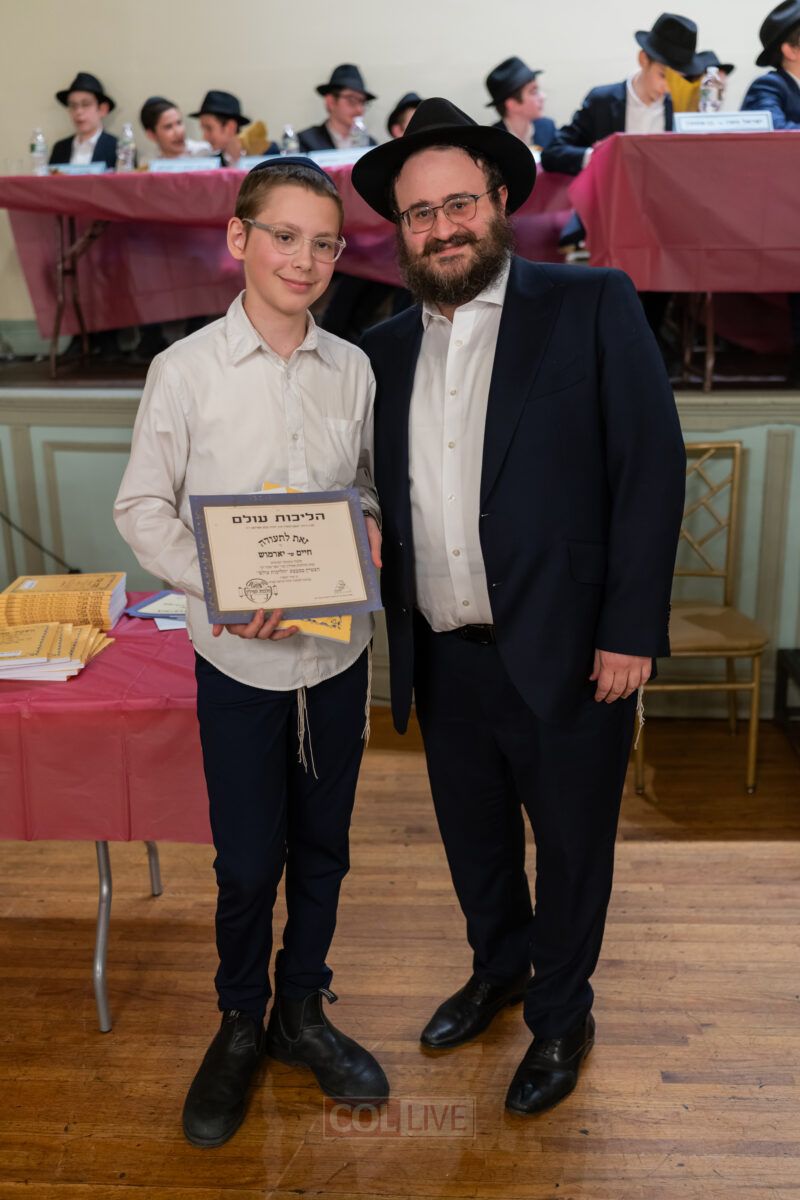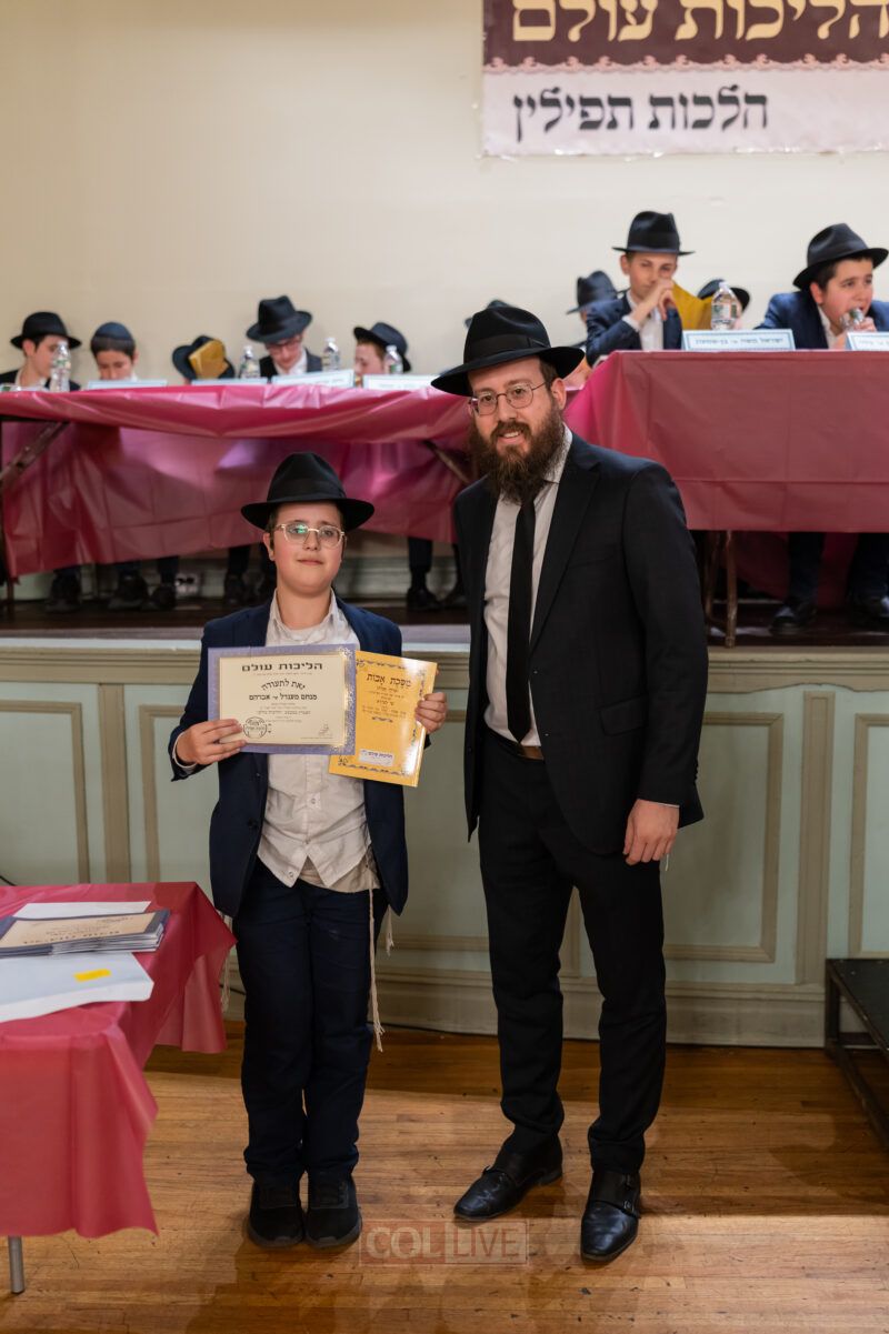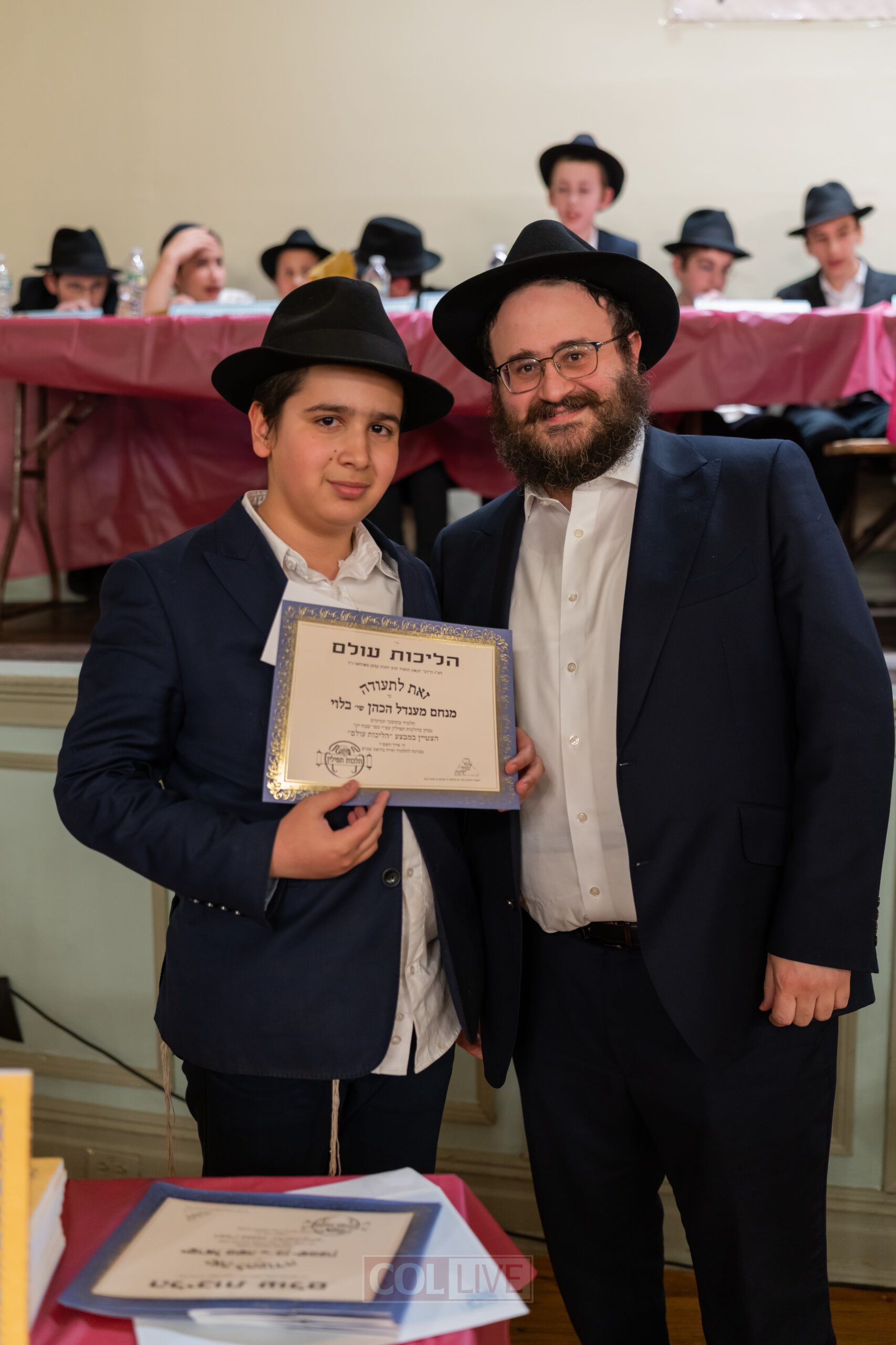 Chidon questions were posed by Rabbi Eli Simpson, principal of grades 6-7 in Oholei Torah, and Rabbi Menachem Mendel Scharf, principal of United Lubavitcher Yeshiva’s Mechina division. Judges included Rabbi Mendel Eidelman, Meisiv in Oholei Torah Zal, and Rabbi Levi Zirkind, 7th grade Rebbi in Oholei Torah.