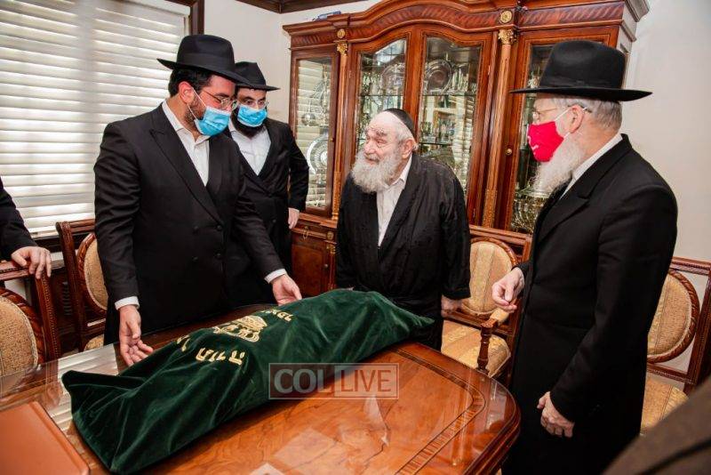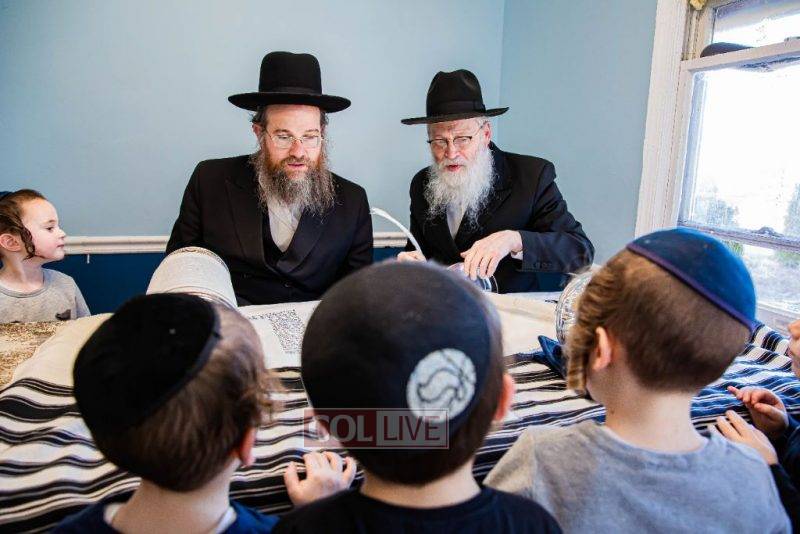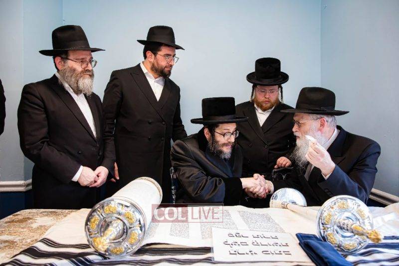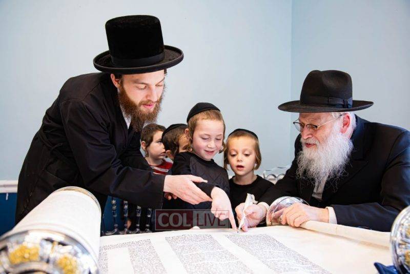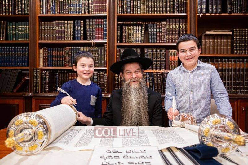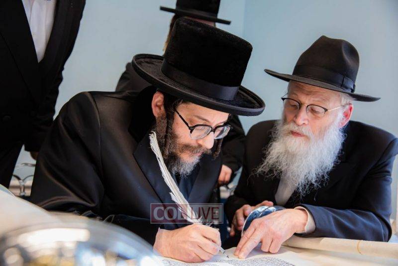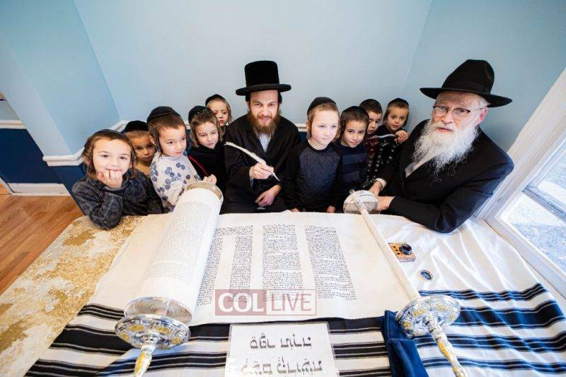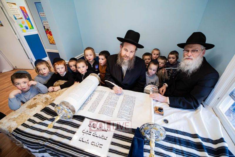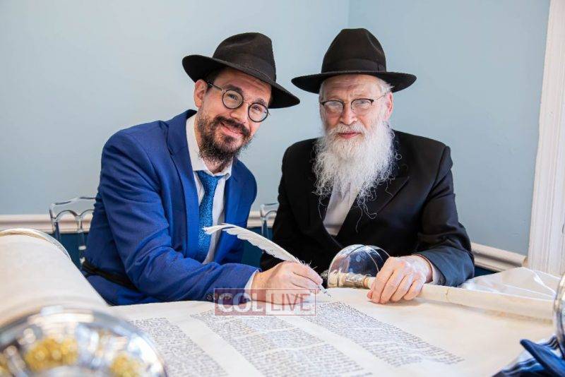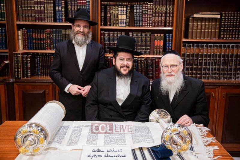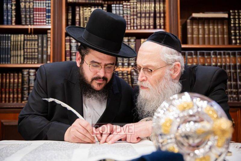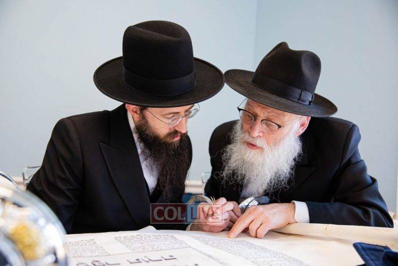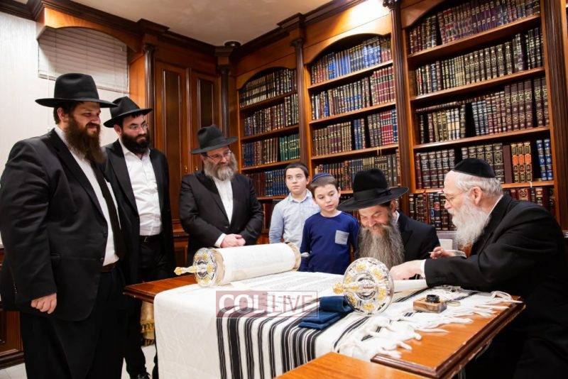 At an event at the Vorka Shul in Lakewood, NJ, respected Rabbonim and community leaders joined Sofer Rabbi Moshe Klein for a chance to inscribe a letter in the Torah which was begun during the start of the pandemic.