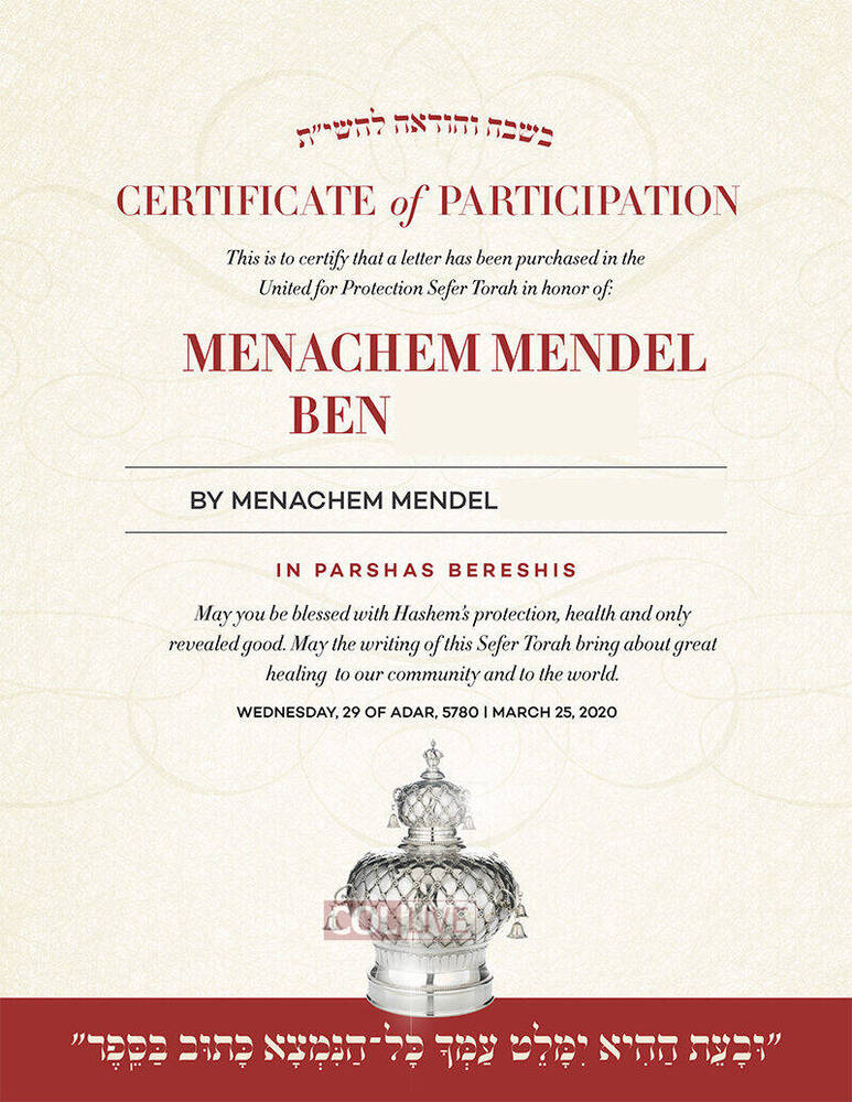 Cohen notes to all participants in the Torah that all excess proceeds of this Torah will be donated to Hatzalah. All financial activities are monitored by the Hatzalah organization and an independent accountant reassuring that every dollar will be used for its intended purpose–the creation of the Miracle Sefer Torah, and the protection and saving of life.