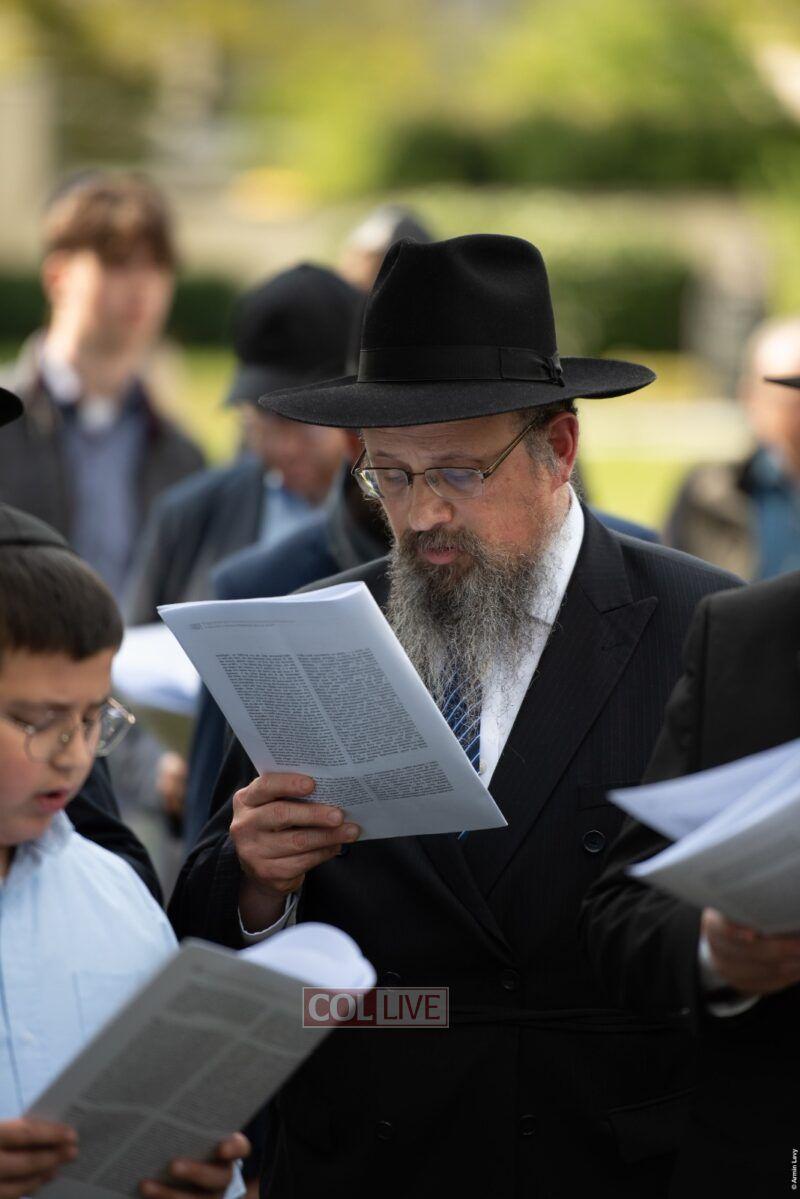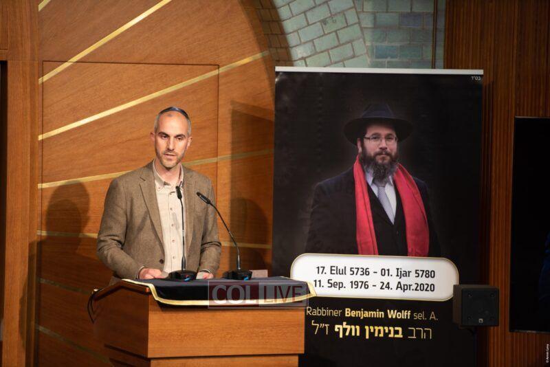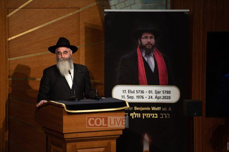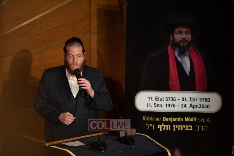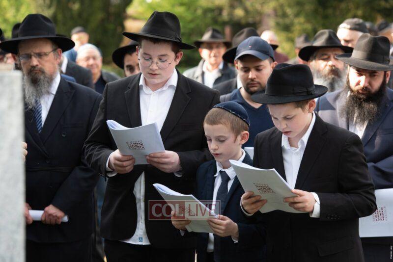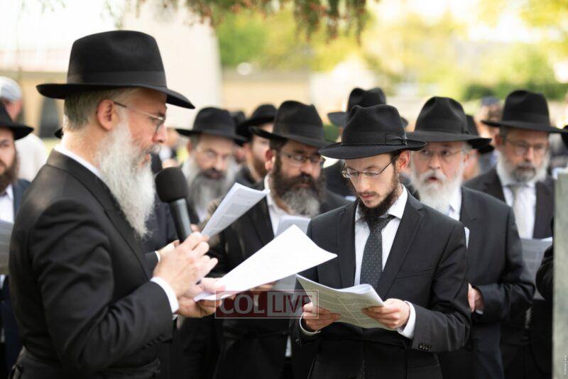 The day opened with a visit to the cemetery to pray at the gravesite of Rabbi Wolff. The recitation of Tehillim was led by his uncle Rabbi Elyakim Wolff of Morristown, New Jersey, his close friend Marc Simon, family friend Dr. Pinchas Kamenetski, his brother-in-law Rabbi Yosef Yitzchak Greenberg of Alaska, USA, and his son in law Rabbi Levi Yitzchak Gottlieb.