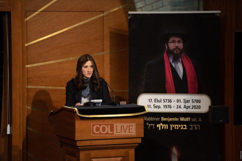 The event was opened by Berlin’s Rabbi Yehuda Teichtel who spoke about the kiddush Hashem that took place in Hanover when Mrs. Wolff and her family found comfort by bringing new growth to Hanover.