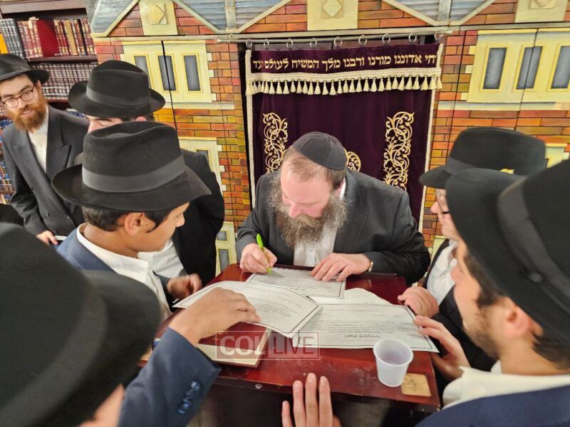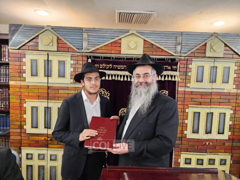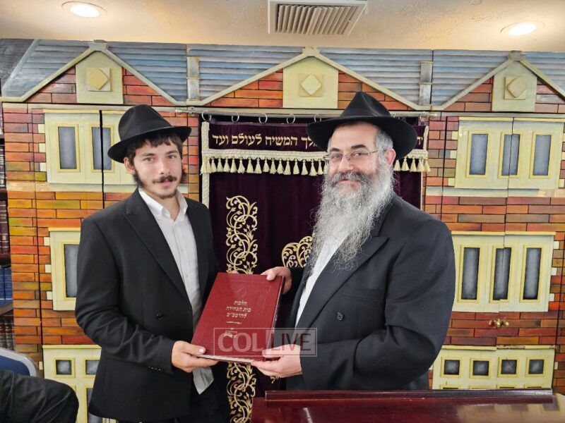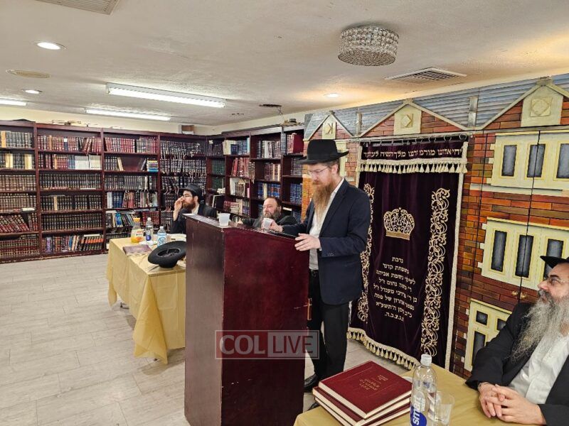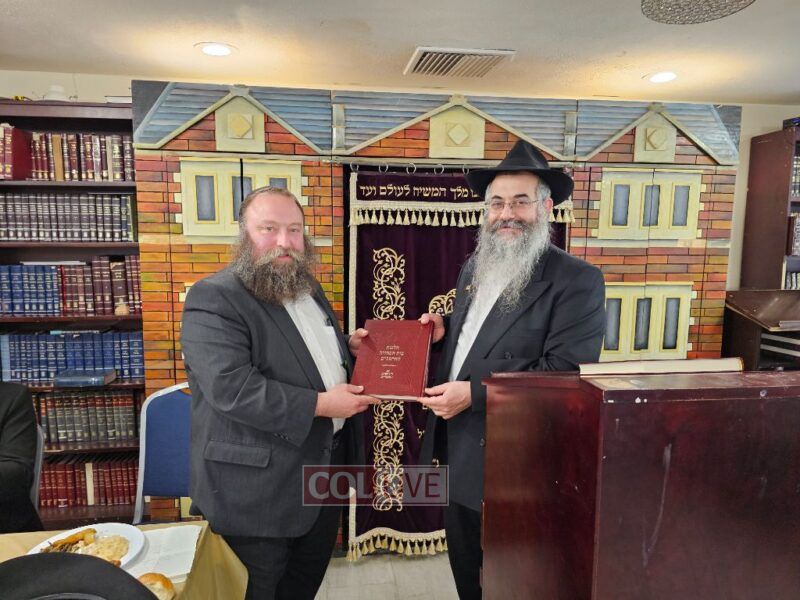 The event was emceed by the Menahel Rabbi Levi Raices, who called up Rabbi Mendy Hacohen Hendel, the Menhalel Kloli of the Yeshiva, who thanked all the staff, Hanhala, and Shluchim, presenting them with a Sefer as an appreciation.