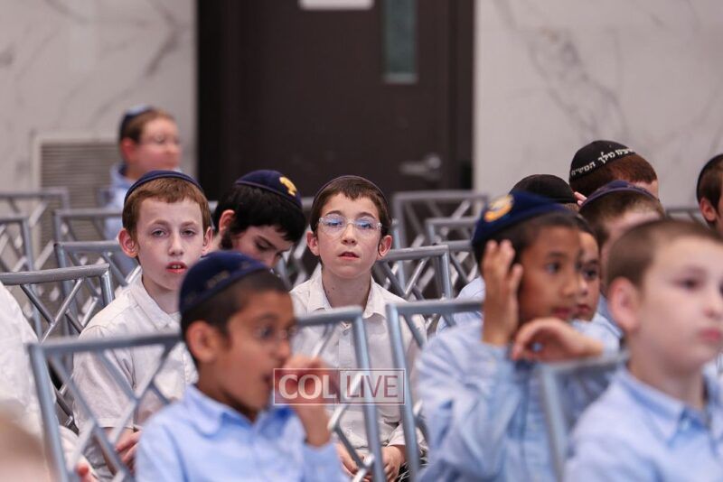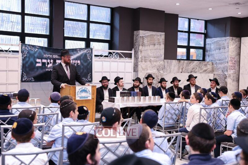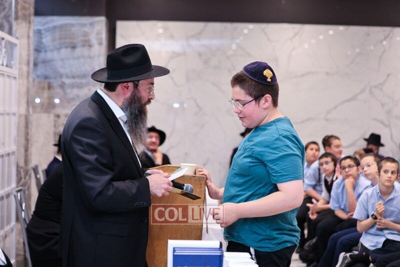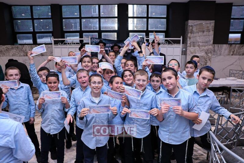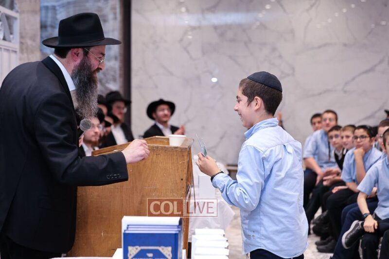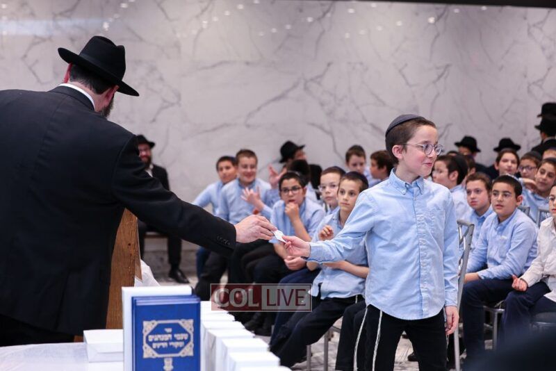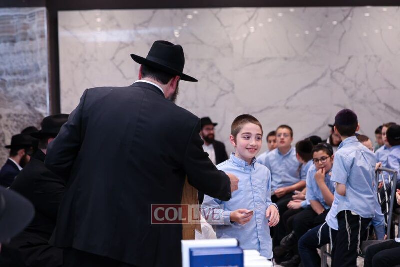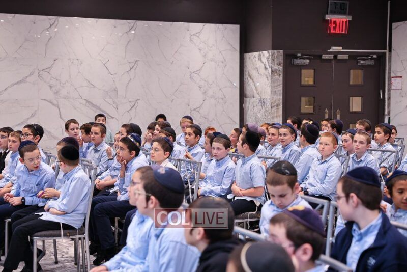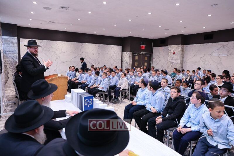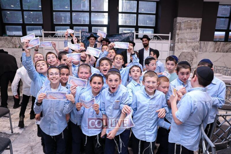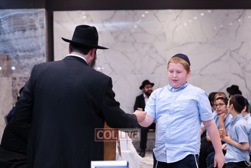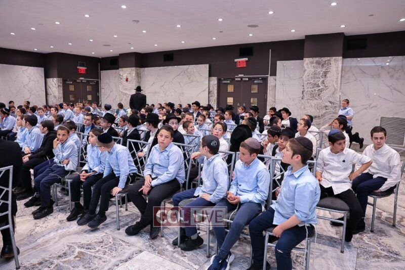 The Lubavitcher Yeshiva Simcha Hall on Crown and Albany in Crown Heights was swarming with hundreds of boys this past Wednesday evening, 15 Sivan, ready to receive their long-awaited “sefarim vouchers” that they earned this year by attending Yeshivas Erev.