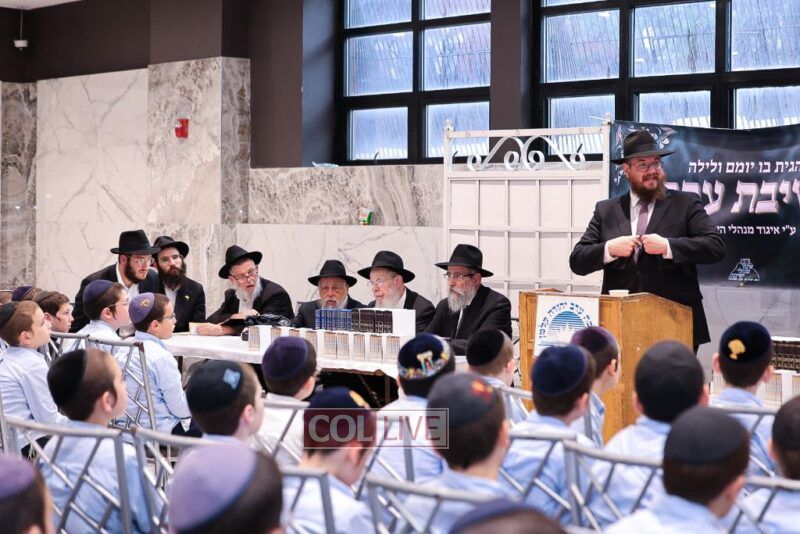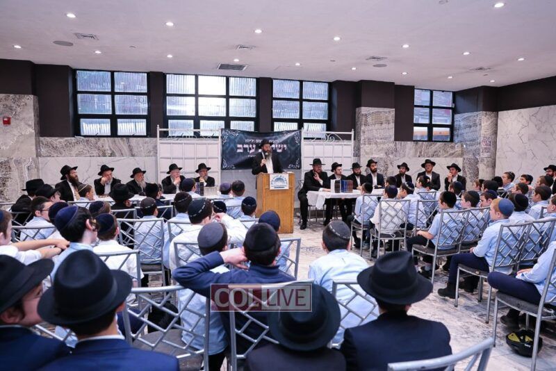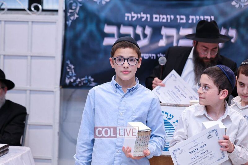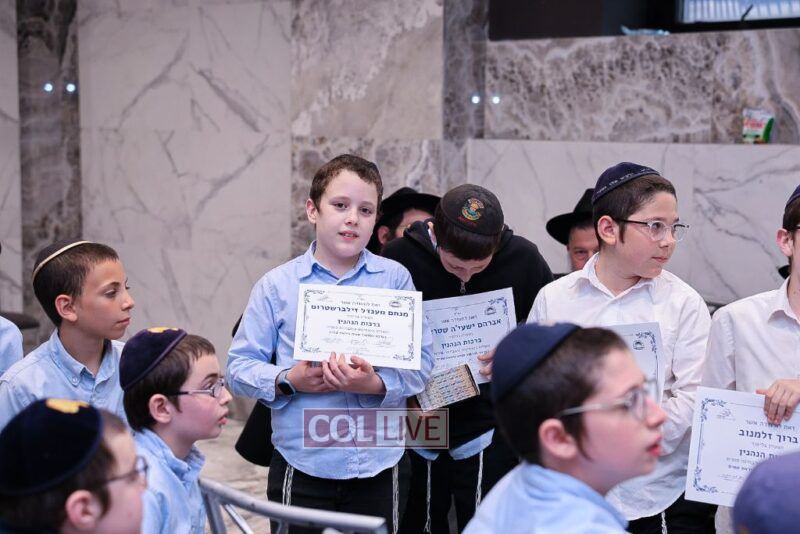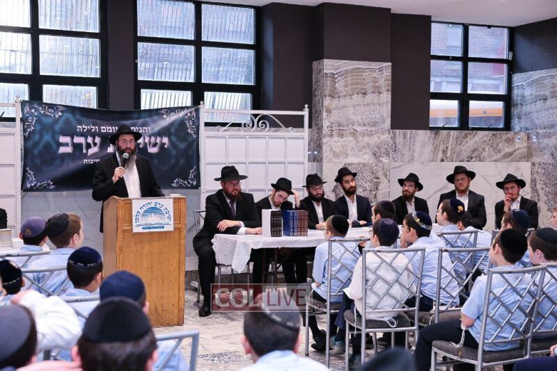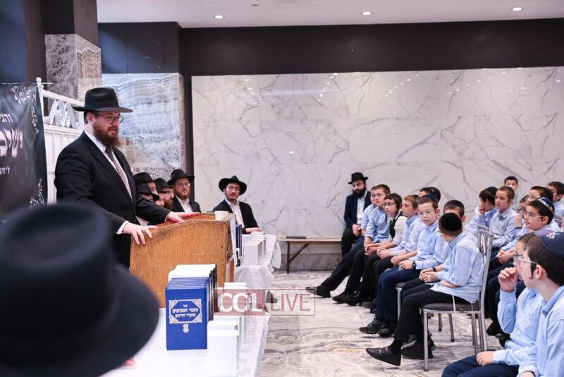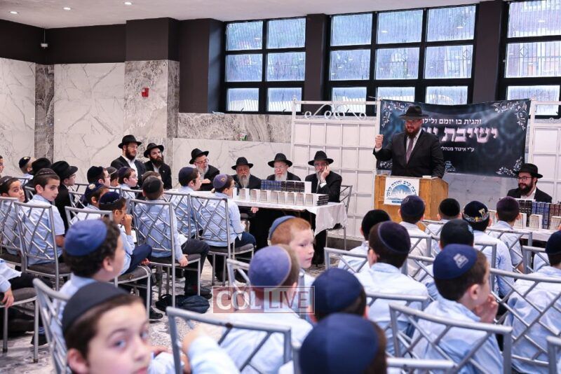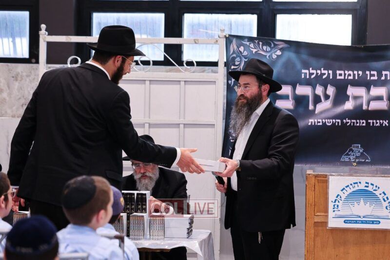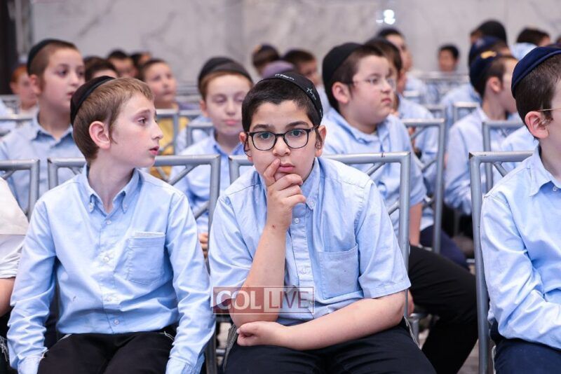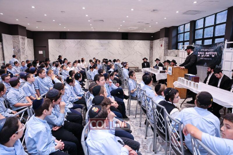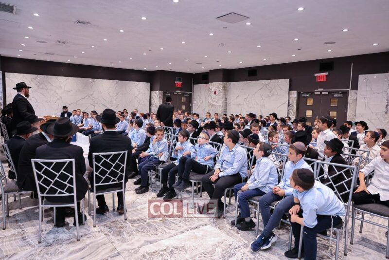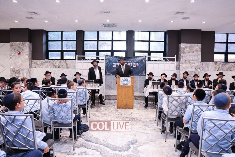 The Lubavitcher Yeshiva Simcha Hall on Crown and Albany in Crown Heights was swarming with hundreds of boys this past Wednesday evening, 15 Sivan, ready to receive their long-awaited “sefarim vouchers” that they earned this year by attending Yeshivas Erev.