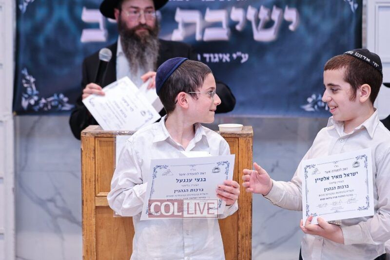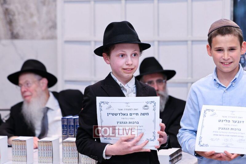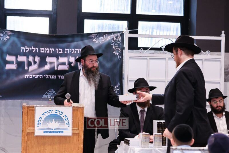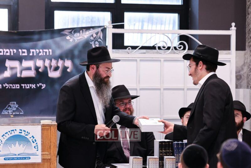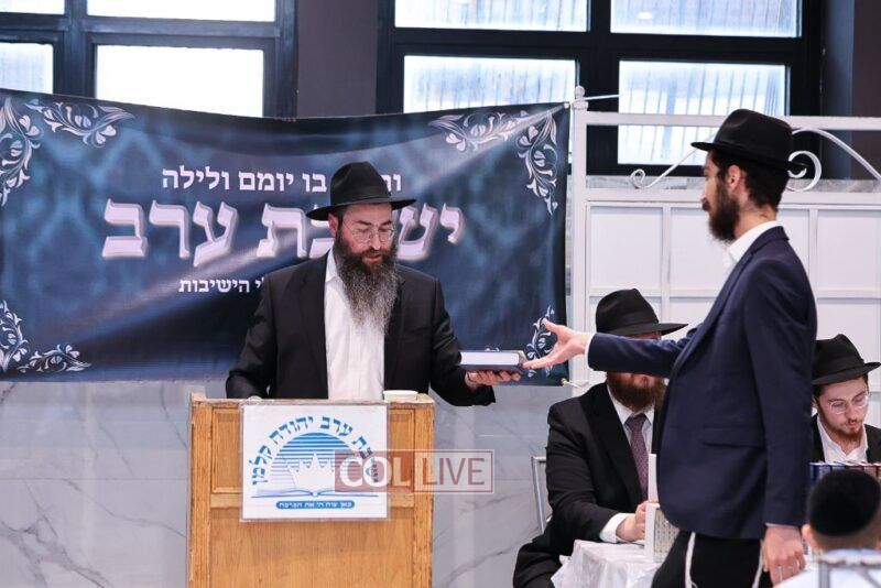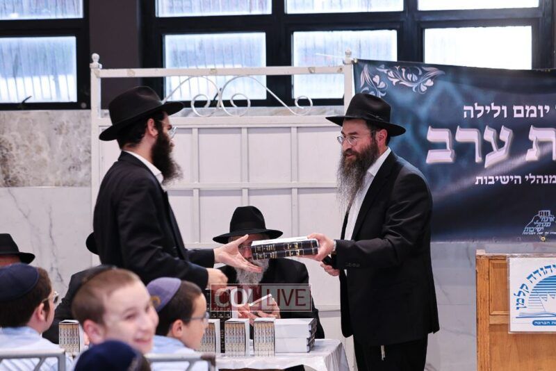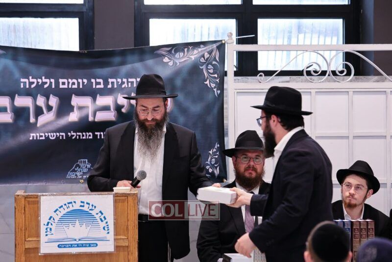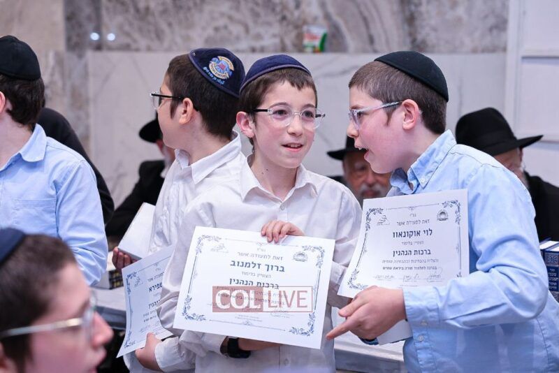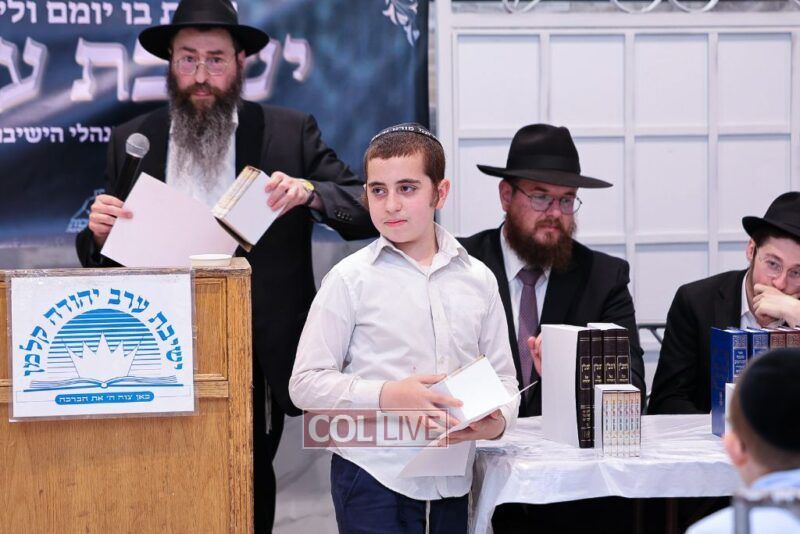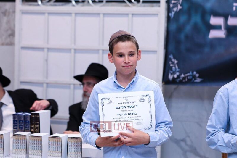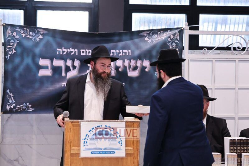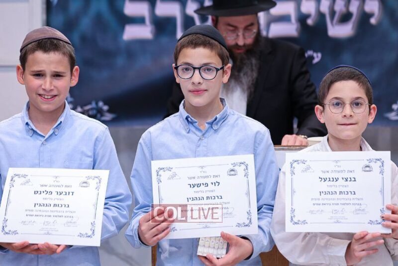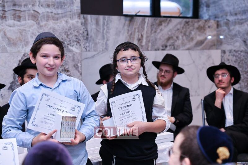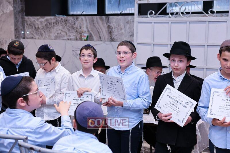 Yisrael Meir Altein, Levi Baumgarten, Yossi Bendet, Bentzy Engel, Levi Fischer, Dov Flint, Moishe Chayim Goldstein, Chaim Moshe Matusov, Levi Okunov, Levi Schapiro, Shaya Schtroks, Menachem Silberstrom, Boruch Zalmanov, Isaac Zellermaier, and Yitzchak Zirkind. They were each rewarded with a certificate and a beautiful set of seforim.
