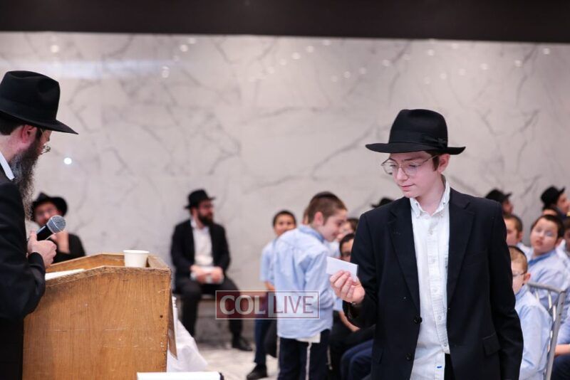 Rabbi Z. Sorkin, the dynamic coordinator of Yeshivas Erev, opened up the grand finale with words of praise for all of the boys that devoted every evening of the week to further themselves in Limud Hatorah – some reviewing their Gemara, others joining the Mishnayos Gavriel – Mishnayos Mordechai Project, still others doing their homework and some learning Mishnayos and Tanya Bal Peh.