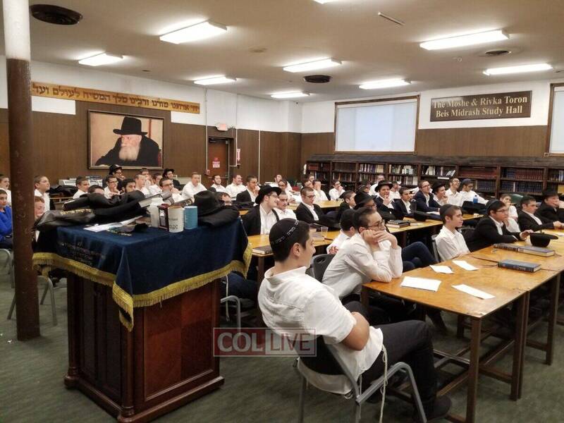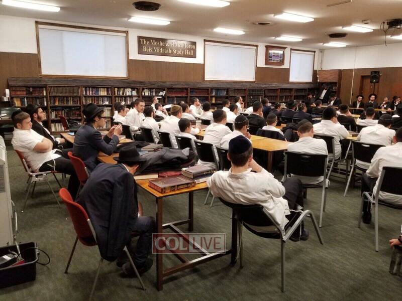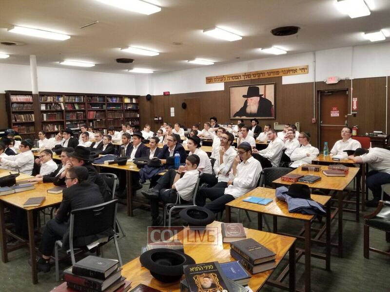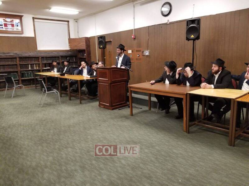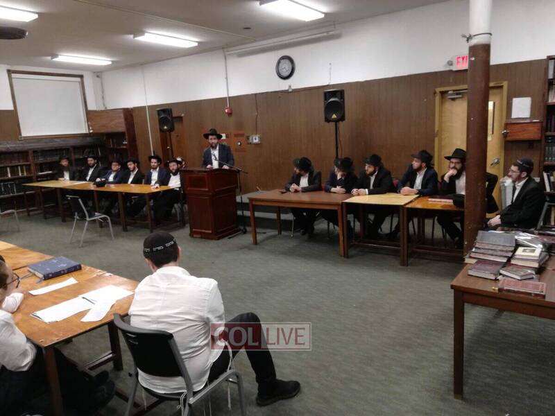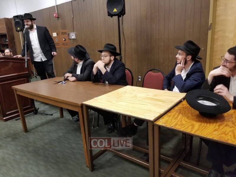 Students gathered for an event to meet the new bochurim Shluchim, who will spend the year in the Yeshiva, organizing programs, learning, and Mivtzas for the bochurim.