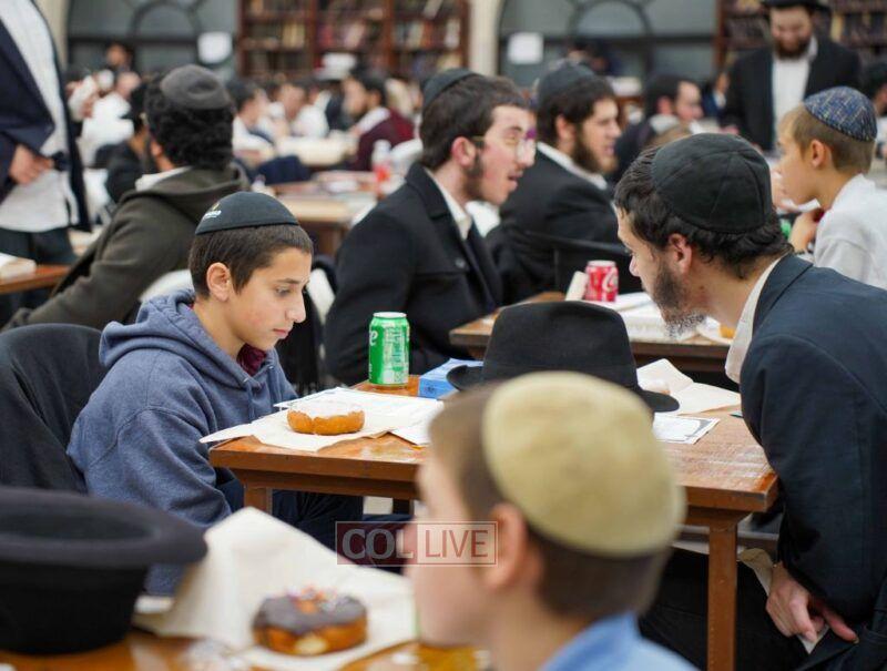 The iconic Melava Malka of the Kinus, only open to Shluchim, is known for its candid atmosphere and heartfelt speeches. However, in recent years it has also become the sight of a yearly tradition. A table piled high with an endless amount of ribboned candy platters.