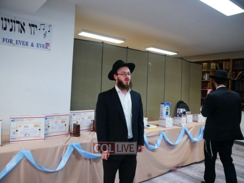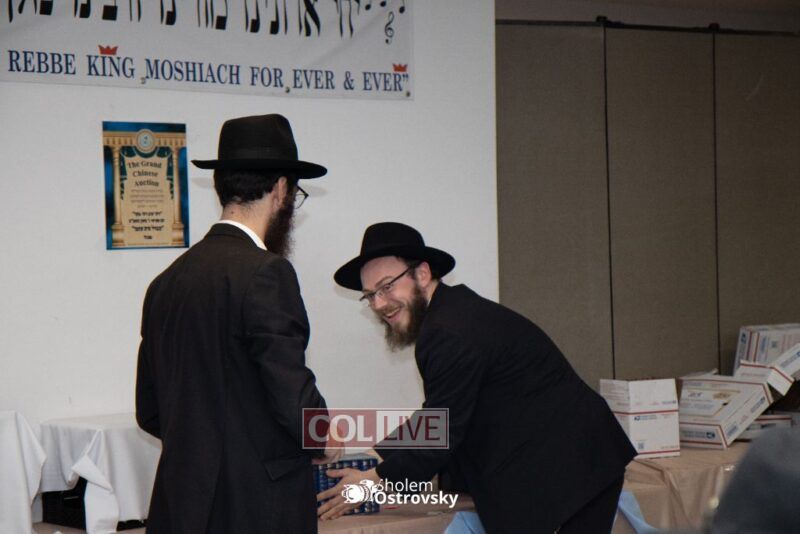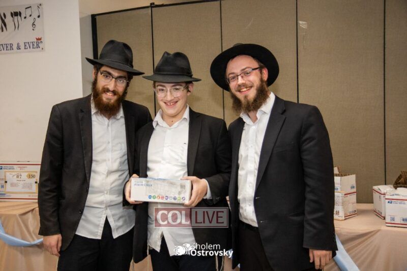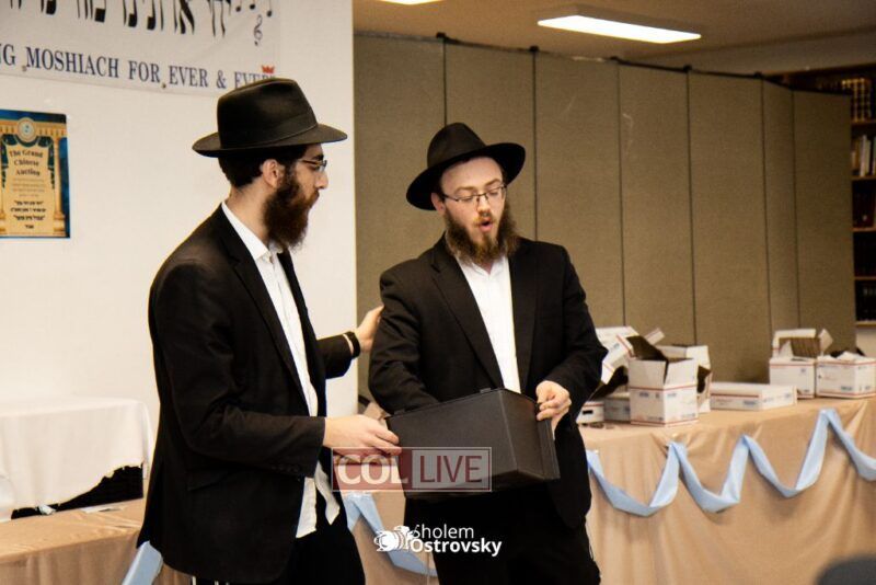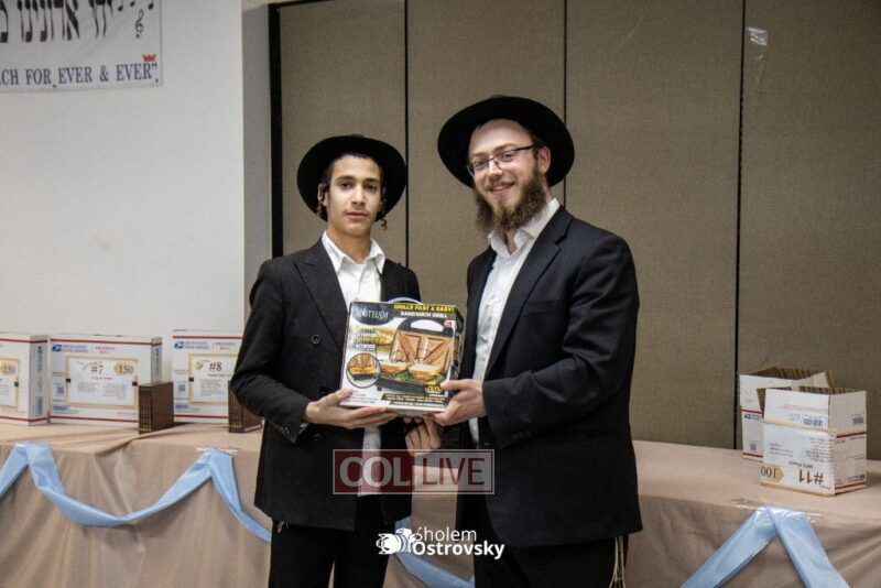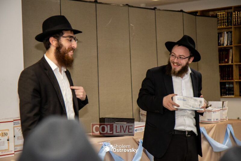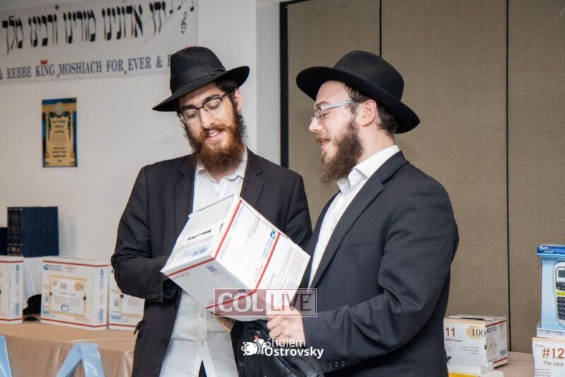 The evening reached its peak after the Chassidus Erev, when two veteran shluchim, Hatomim Meir Jabra and Hatomim Hachosson Dovber Feldman, conducted a spirited presentation of the prizes. Their energetic delivery added to the anticipation as winners were drawn for each item.