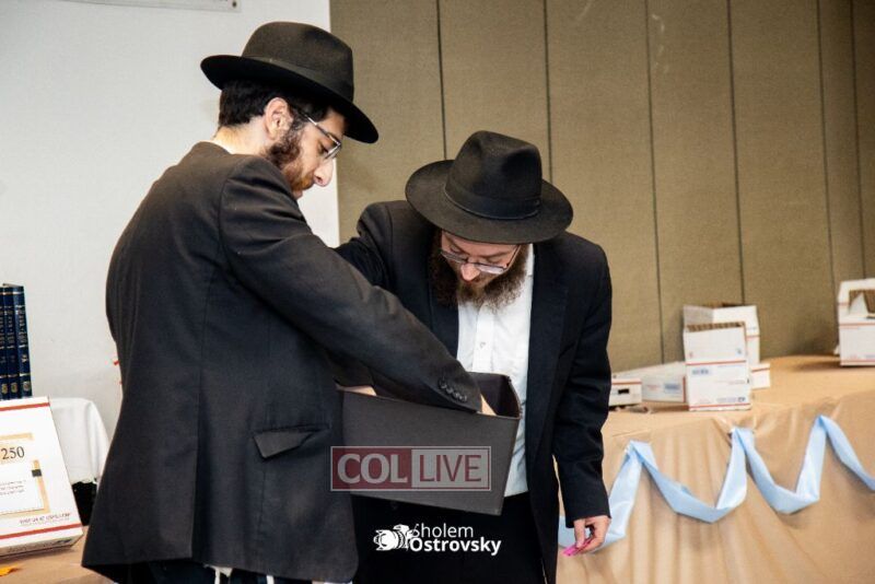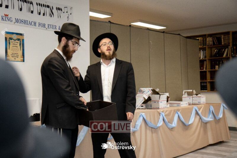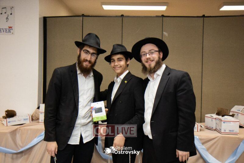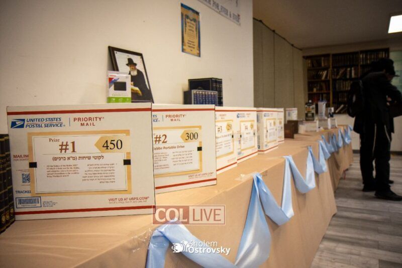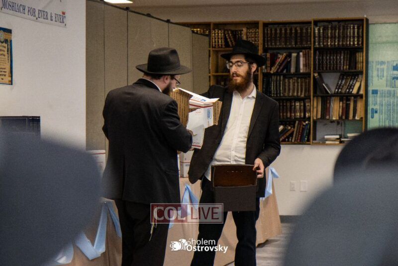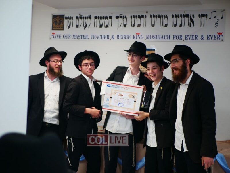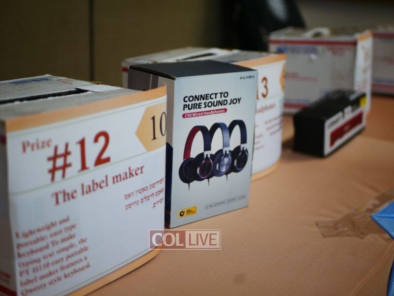 The evening reached its peak after the Chassidus Erev, when two veteran shluchim, Hatomim Meir Jabra and Hatomim Hachosson Dovber Feldman, conducted a spirited presentation of the prizes. Their energetic delivery added to the anticipation as winners were drawn for each item.