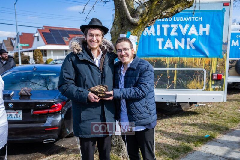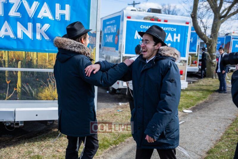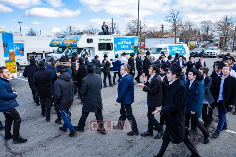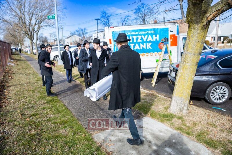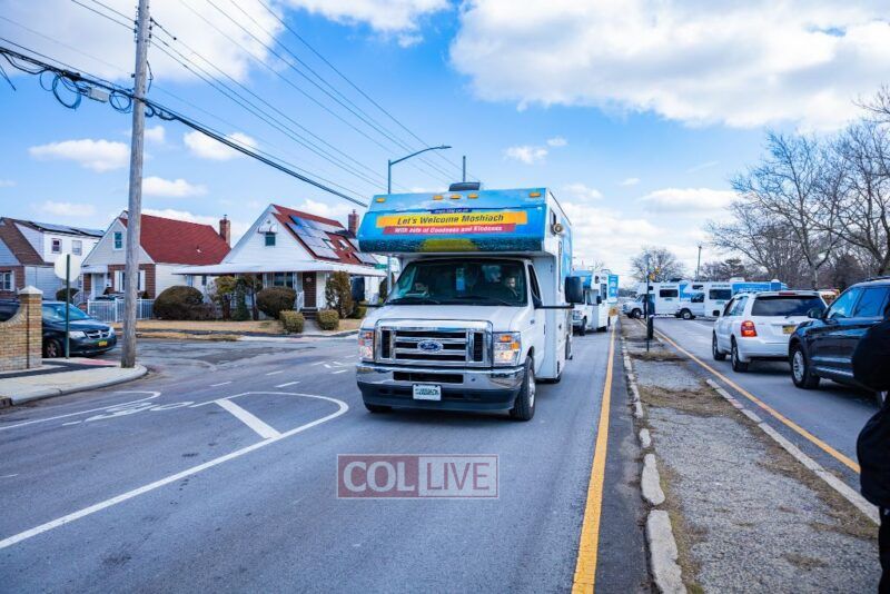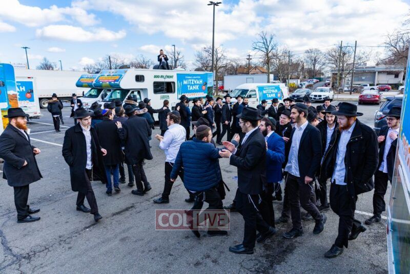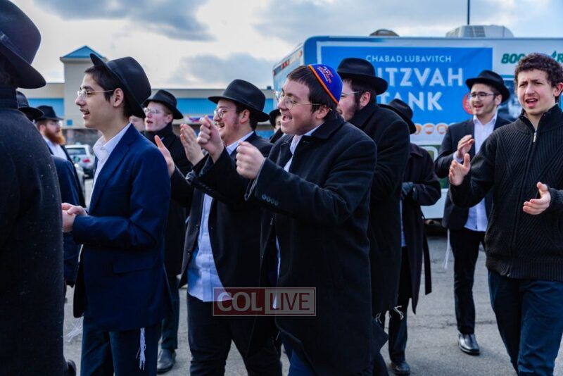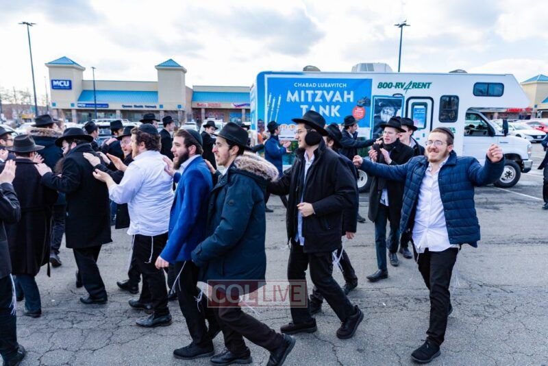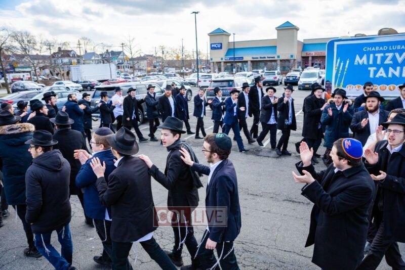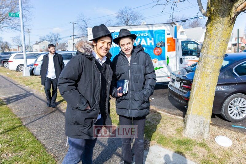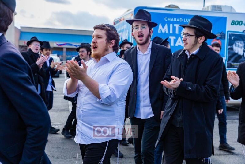 The Parade left from the Rebbe’s Ohel on Wednesday morning, heading out to locations in Queens and Long Island. A highlight was a stop outside a nearby supermarket, where the bochurim danced joyously and gathered for an outdoor Hakhel with Jewish passersby, creating a big Kiddush Hashem.