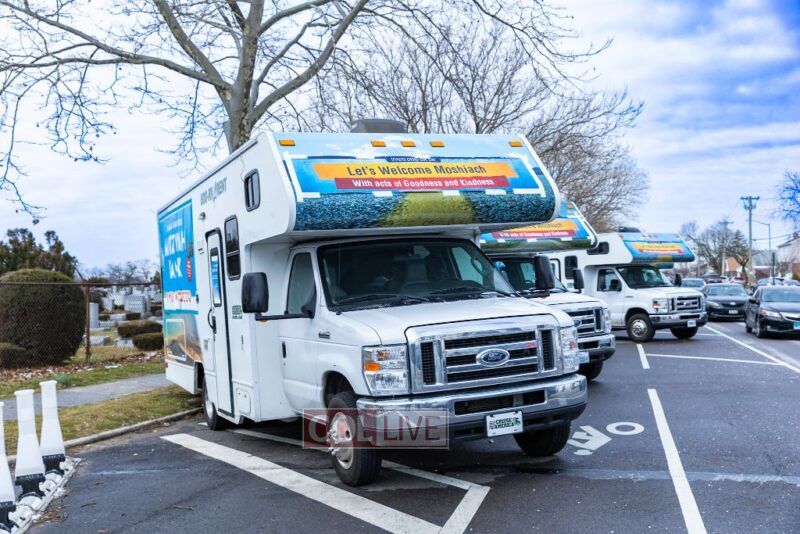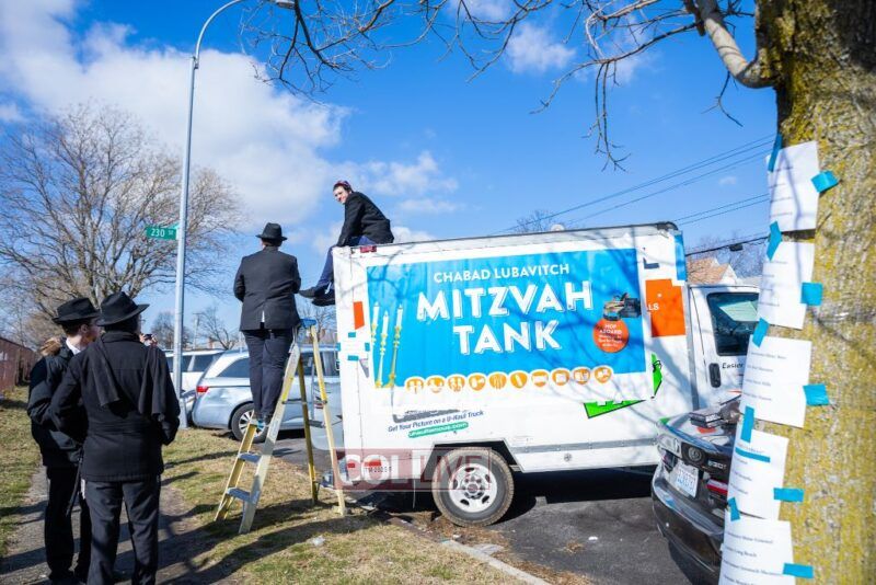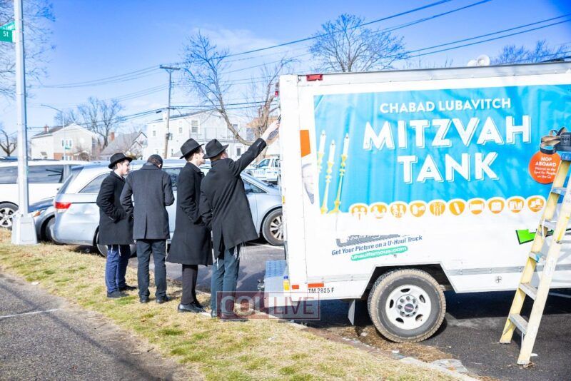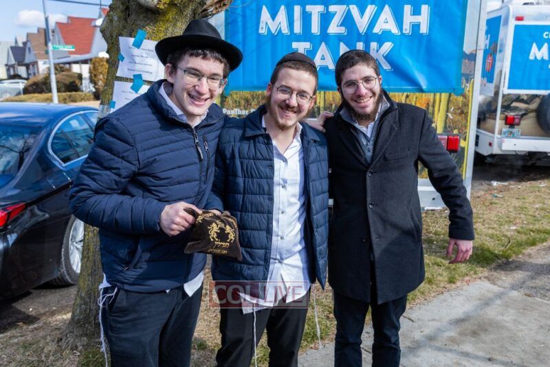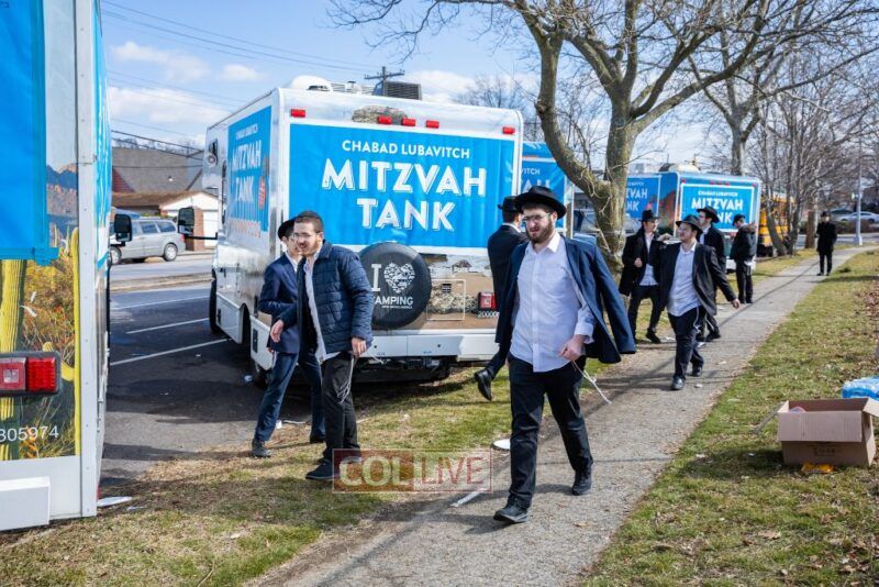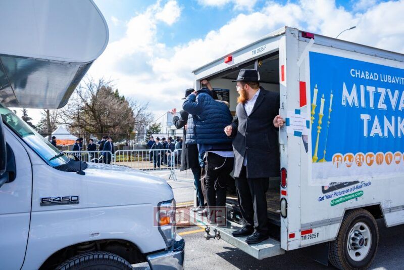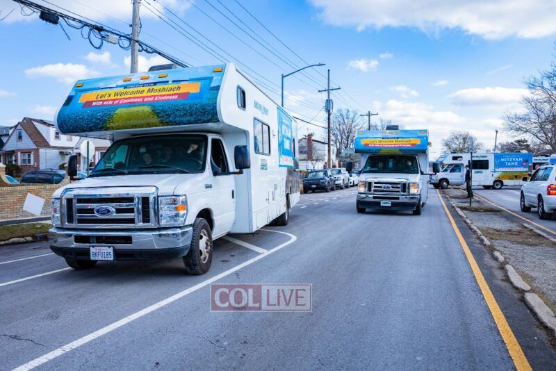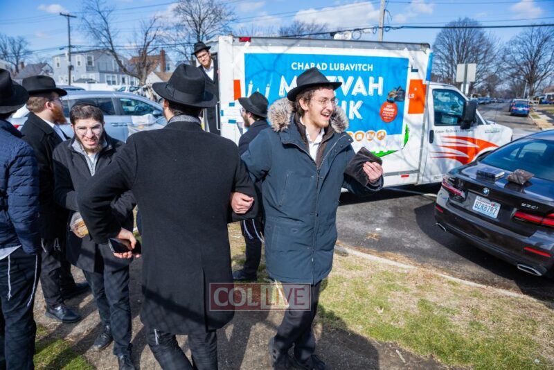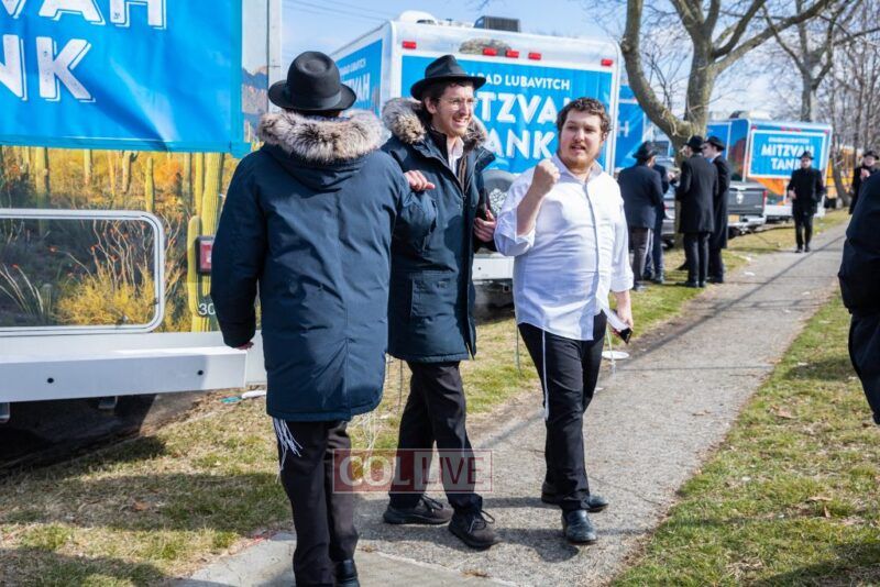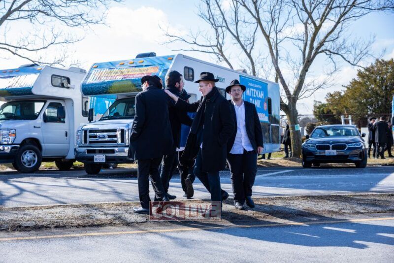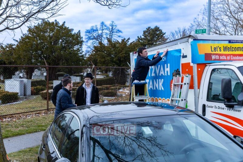 The Parade left from the Rebbe’s Ohel on Wednesday morning, heading out to locations in Queens and Long Island. A highlight was a stop outside a nearby supermarket, where the bochurim danced joyously and gathered for an outdoor Hakhel with Jewish passersby, creating a big Kiddush Hashem.
