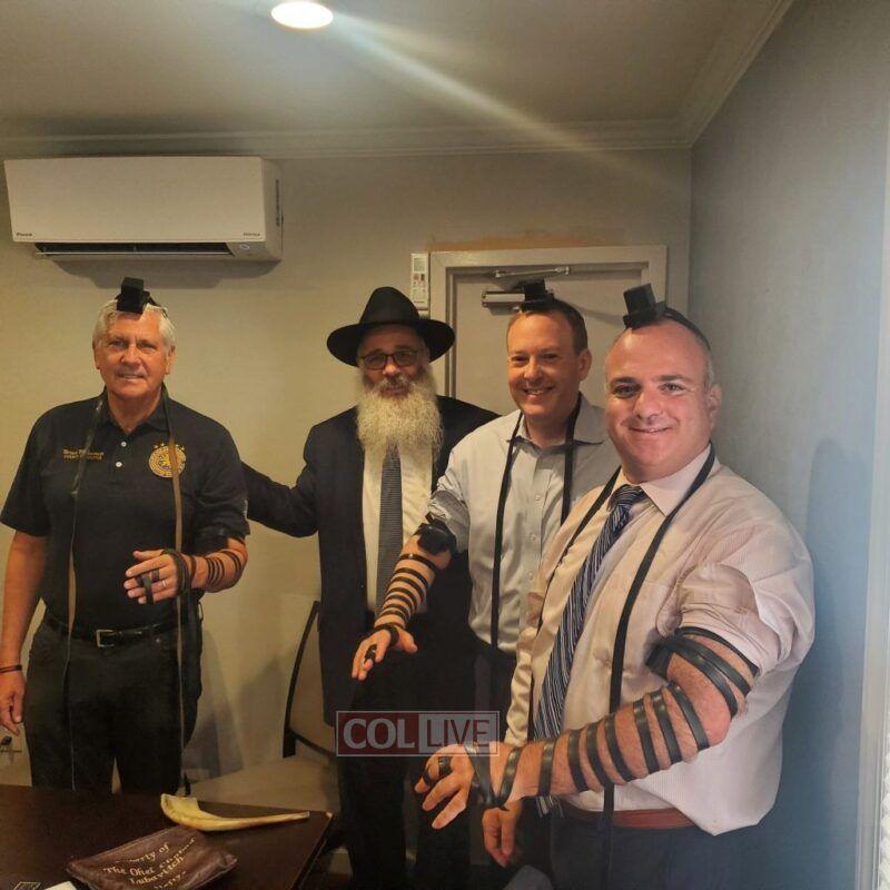 He was accompanied by a group of Crown Heights activists, including Yitzchok Rimler and Max Coen. They were joined by Director of Chabad of the Five Towns, Shliach Rabbi Zalman Wolowik. Nassau County Executive Bruce Blakeman joined as well.